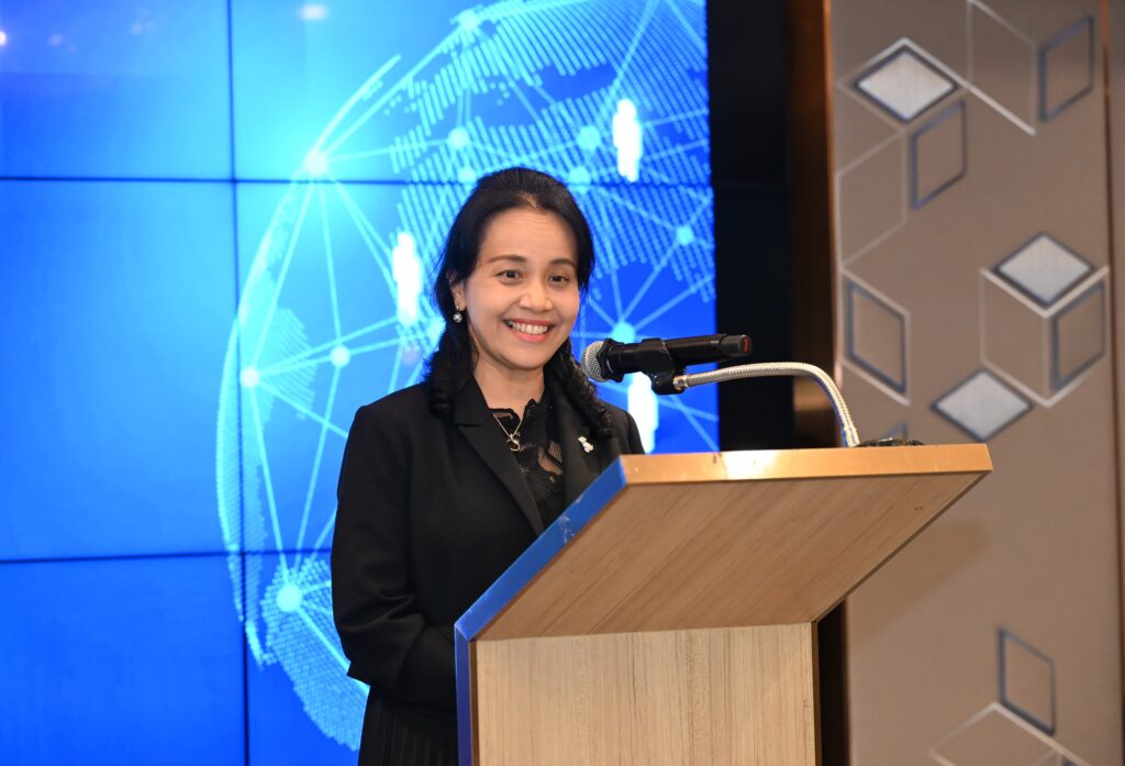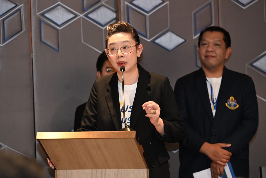 นอกจากนี้ คุณแก้วเกศร์ ถาวรพันธ์ รองเลขาธิการวุฒิสภา ได้ร่วมกล่าวแสดงความยินดี โดยระบุว่า “การอบรมในครั้งนี้ถือเป็นก้าวย่างสำคัญที่จะช่วยขับเคลื่อนให้งานวิจัยสามารถนำไปใช้ประโยชน์ได้จริง และเป็นเป้าหมายในการร่วมกันผลักดันการพัฒนาประเทศในมิติต่างๆ ได้อย่างเป็นรูปธรรม หลายคนมักตั้งคำถามว่า งานวิจัยที่ดีนั้นอยู่ที่ไหน อาจจะอยู่ในห้องสมุดหรืออยู่บนหิ้ง ความท้าทายที่สำคัญคือ เราจะนำงานวิจัยที่ดีเหล่านั้นลงจากหิ้งมาใช้ให้เกิดประโยชน์อย่างเป็นรูปธรรมได้อย่างไร ดิฉันขอชื่นชมหลักสูตรนี้ที่มีความมุ่งมั่นในการนำงานวิจัยมาใช้ประโยชน์ ไม่ว่าจะเป็นด้านนโยบายสาธารณะ ด้านสังคมและชุมชน หรือด้านพาณิชย์ก็ตาม สำหรับสำนักงานเลขาธิการวุฒิสภา ซึ่งเป็นหน่วยงานที่มีภารกิจหลักในการสนับสนุนงานของวุฒิสภา ทั้งด้านการประชุม ด้านกฎหมาย และด้านวิชาการ เราได้เล็งเห็นถึงความสำคัญของการนำผลงานวิจัยและองค์ความรู้ต่าง ๆ มาใช้ประโยชน์ จึงได้สนับสนุนให้มีการลงนามในบันทึกข้อตกลงความร่วมมือ (MOU) กับหน่วยงานต่างๆ อย่างต่อเนื่อง เพื่อนำผลงานทางวิชาการและงานวิจัยมาประยุกต์ใช้ในกระบวนการนิติบัญญัติต่อไป”