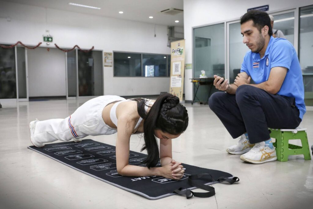 เมื่อวันที่ 13 มีนาคม 2569 ที่ศูนย์วิทยาศาสตร์การกีฬา การกีฬาแห่งประเทศไทย หัวหมาก : “ตั๊น” จิตภัสร์ กฤดากร อดีตสมาชิกสภาผู้แทนราษฎร เข้ารับการตรวจร่างกายก่อนการแข่งขันกระโดดร่มอินดอร์ ศึก “เอฟเอไอ เวิลด์คัพ อินดอร์ สกายไดฟ์วิ่ง” ที่ประเทศฝรั่งเศส ระหว่างวันที่ 1-4 เมษายน 2569