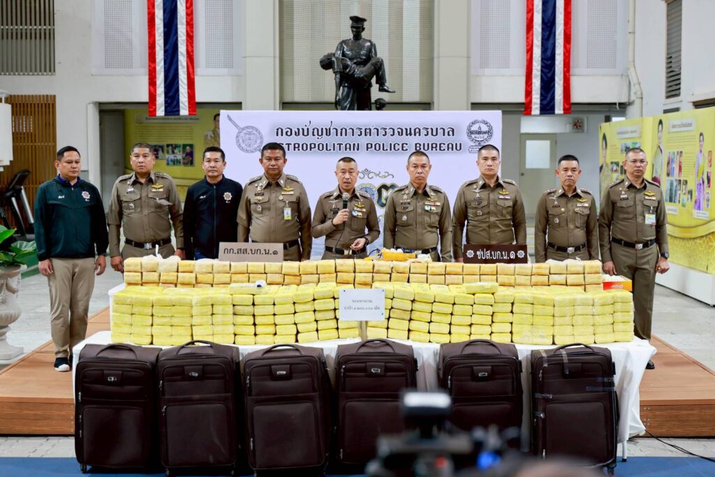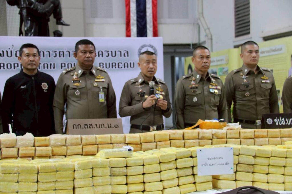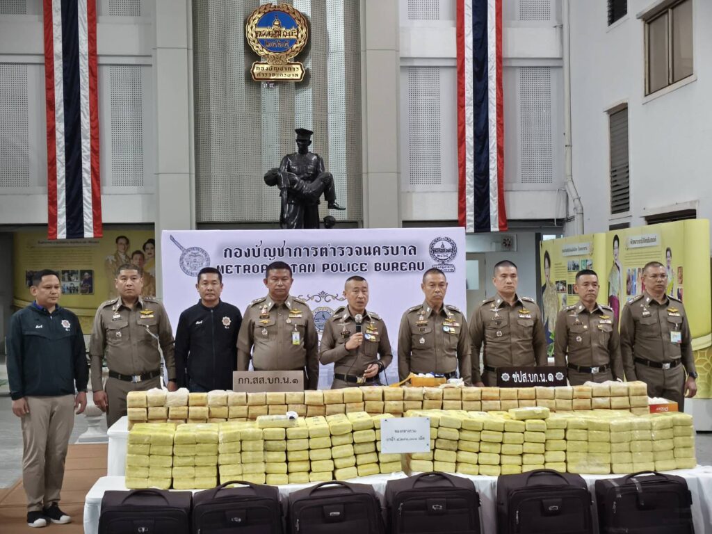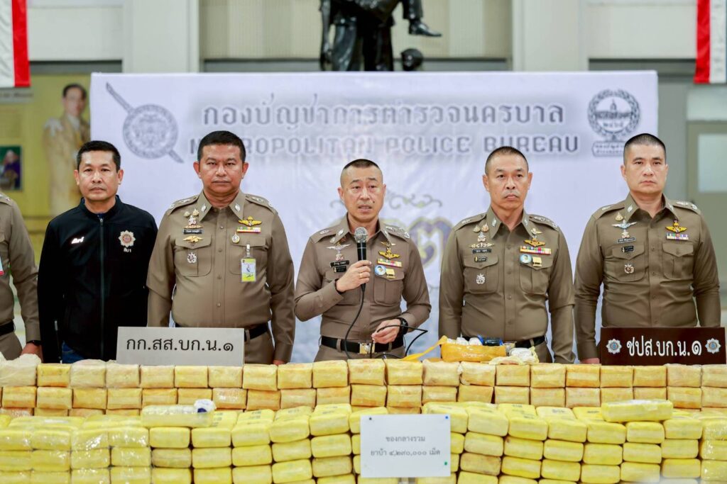 วันที่ 16 มี.ค.2569 เวลา 11.30 น.ที่ลานเอนกประสงค์ กองบัญชาการตำรวจนครบาล (บช.น.) : พล.ต.อ.สำราญ นวลมา รอง ผบ.ตร.,/ผอ.ศอ.ปส.ตร. พร้อมด้วย พล.ต.ท.สยาม บุญสม ผบช.น.,พล.ต.ท.นพศิลป์ พูลสวัสดิ์ ผบช.ประจำ สง.ผบ.ตร./ช่วยราชการ บช.น.,พล.ต.ต.พัลลภ แอร่มหล้า,พล.ต.ต.วสันต์ เตชะอัครเกษม,พล.ต.ต.ธีรเดช ธรรมสุธีร์,พล.ต.ต.อัฎพร วงศ์ศิริปรีดา รอง ผบช.น.,พล.ต.ต.วรศักดิ์ พิสิษฐบรรณกร ผบก.น.1,พ.ต.อ.เอกภพ ตันประยูร,พ.ต.อ.ศักยะ แสงวรรณ รอง ผบก.น.1,พ.ต.อ.วิชัย สนสกุล ผกก.สส.บก.น.1,พ.ต.ท.ณัชฐปกรณ์ หัดคำ รอง ผกก.สส.บก.น.1,พ.ต.ท.ณัฐฐโภคิน เหลืองลักษมี,พ.ต.ท.อรรถพงษ์ นกขุนทอง รอง ผกก.สส.บก.น.1 และ พ.ต.ท.เอกยุทธ อดิส รสว.กก.สส.บก.น.1 พร้อมเจ้าหน้าที่ กก.สส.บก.น.1 ร่วมกันแถลงผลการจับกุมผู้ต้องหา 4 ราย ดังนี้ นายเฉลิมพล หรือเม่น มาแก้ว อายุ 28 ปี,นายพีรพล หรือจูน เสื่อทอง อายุ 28 ปี,นายวิชัย กงศร อายุ 49 ปี และ นายนิพล แสงกล้า อายุ 59 ปี พร้อมด้วยของกลางยาบ้าจำนวน 4.290 ล้านเม็ด,รถยนต์ที่ใช้ขนยาเสพติด รวม 4 คัน เป็นรถเก๋งแท็กซี่ ยี่ห้อโตโยต้า รุ่นอัลติส สีเหลือง-แดง 2 คัน ทะเบียน ทข 470 หมวดจังหวัดขอนแก่น,ยี่ห้อโตโยต้า รุ่นพรีอูส ทะเบียน 1 มฆ 1513 กรุงเทพมหานคร,กระบะ ยี่ห้ออีซูซุ ดีแม็กซ์ สีดำ ทะเบียน 2 ขห 1611 กรุงเทพมหานคร,กระบะ ทะเบียน กต 7213 ลำพูน และโทรศัพท์มือถือ รวม 4 เครื่อง โดยจับกุมได้ที่พื้นที่บ้านเช่า จ.ลพบุรี ต่อเนื่องห้องเช่าไม่มีชื่อ ต.บางขันหมาก อ.เมือง จ.ลพบุรี และปั๊มน้ำมัน ต.ตลิ่งชัน อ.เมือง จ.สระบุรี