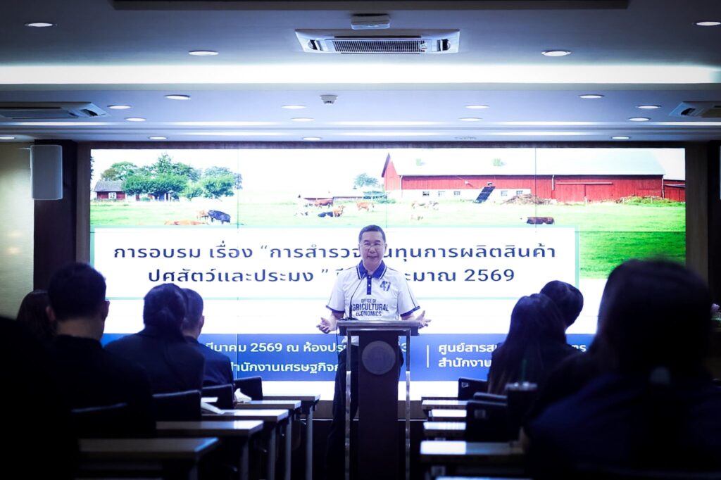 ในการขับเคลื่อนภารกิจเพื่อมุ่งสู่เป้าหมายดังกล่าว (สศก.)ได้จัดอบรมเชิงปฏิบัติการเรื่อง “การสำรวจต้นทุนการผลิตสินค้าปศุสัตว์และประมง” ระหว่างวันที่ 12–13 มีนาคม 2569 เพื่อให้เจ้าหน้าที่ทั้งในส่วนกลางและส่วนภูมิภาคได้รับองค์ความรู้และทักษะในการจัดทำข้อมูลที่ถูกต้องแม่นยำตามหลักวิชาการ โดยมุ่งเน้นความเชี่ยวชาญในการทวนสอบข้อมูลหน้างานให้สะท้อนข้อเท็จจริง เพื่อให้ได้สารสนเทศที่มีคุณภาพส่งต่อถึงมือเกษตรกรและผู้ใช้ประโยชน์ทุกภาคส่วน ซึ่งการอบรมครั้งนี้ มีการให้ความรู้ในหัวข้อที่สำคัญเกี่ยวกับการสำรวจต้นทุนและปริมาณการผลิตสินค้าปศุสัตว์และประมง ปี 2569 ประกอบด้วย ระเบียบวิธีการสำรวจข้อมูลสินค้ากุ้งขาวแวนนาไม ไก่ไข่และไข่ไก่ เกลือทะเล ศูนย์รวบรวมน้ำนมดิบและโคนม รวมถึงการสำรวจราคาปัจจัยการผลิตและปริมาณการผลิตไก่เนื้อและปลากะพง โดยอาศัยศิลปะในการซักถามและจรรยาบรรณในการวิจัยเพื่อให้ได้ข้อมูลที่สะท้อนขีดความสามารถในการแข่งขันของประเทศอย่างแท้จริง