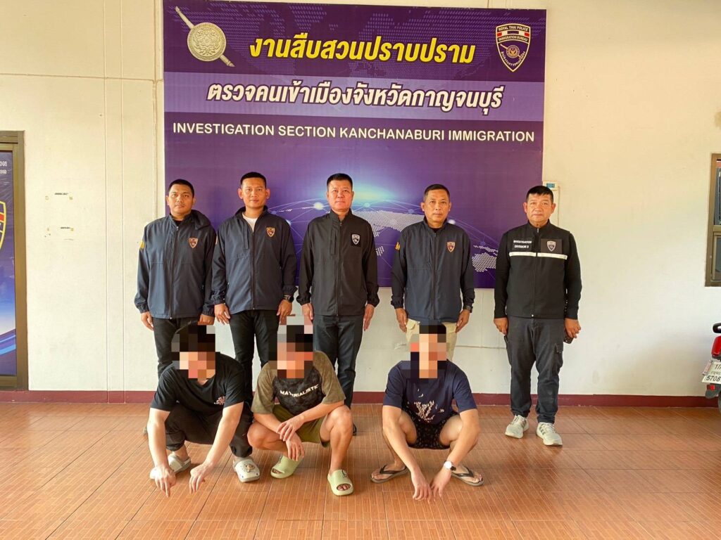 เจ้าหน้าที่ชุดสืบสวน ตม.จ.กาญจนบุรี ตรวจพบบุคคลต่างด้าวต้องสงสัย จึงได้สืบสวนติดตามพบว่าได้เข้าพักบริเวณรีสอร์ท ใน ต.แก่งเสี้ยน อ.เมือง จ.กาญจนบุรี ต่อมาได้เข้าตรวจสอบภายในรีสอร์ทดังกล่าว พบ 1.นายหลี่ ตง อายุ 29 ปี,2.นายจู หย่ง หยิน และ 3.นายจัง ฟั่ง หลง สัญชาติจีนทั้งหมด ไม่มีเอกสารแสดงตน จากการสอบถามผู้ถูกจับที่ 1 ได้ให้การว่าพวกตนเป็นบุคคลสัญชาติจีนเดินทางมาจากประเทศเวียดนาม ผ่านประเทศลาว และเดินทางเข้าไทยผ่านช่องทางธรรมชาติ โดยมีรถยนต์มารอรับพวกตนที่บริเวณแนวชายแดนไทย-ลาว และมาส่งพวกตน ณ รีสอร์ทดังกล่าวเมื่อวันที่ 16 มี.ค.2569 เวลาประมาณ 07.00 น. ผู้ถูกจับให้การรับสารภาพตลอดข้อกล่าวหา ชุดจับกุมจึงได้ทำบันทึกจับกุม พร้อมส่งตัวให้ พงส.สภ.เมืองกาญจนบุรี เพื่อดำเนินคดีตามกฎหมายต่อไป