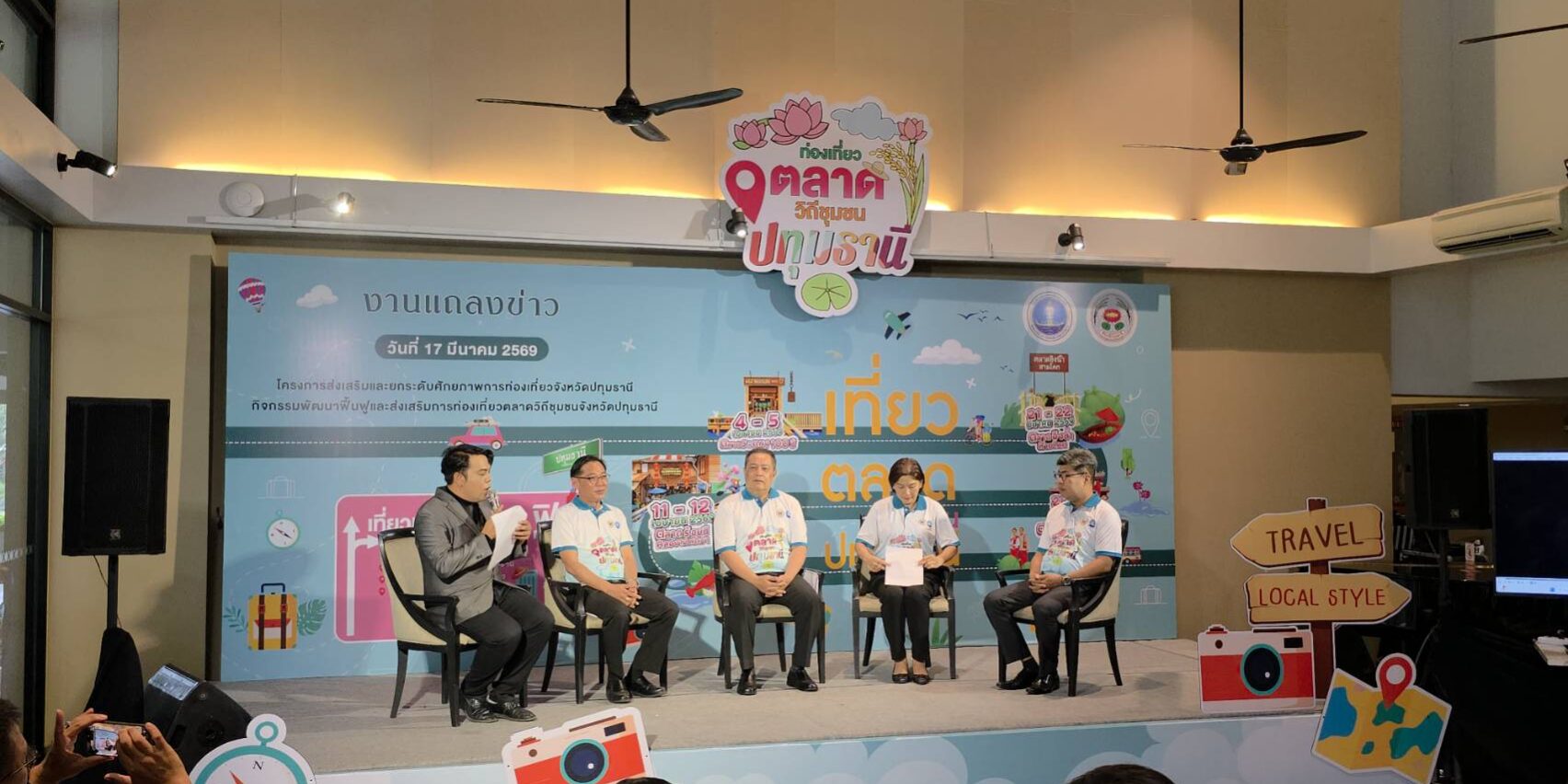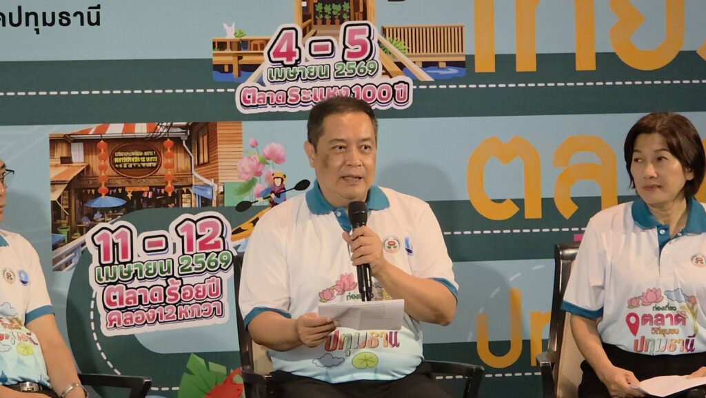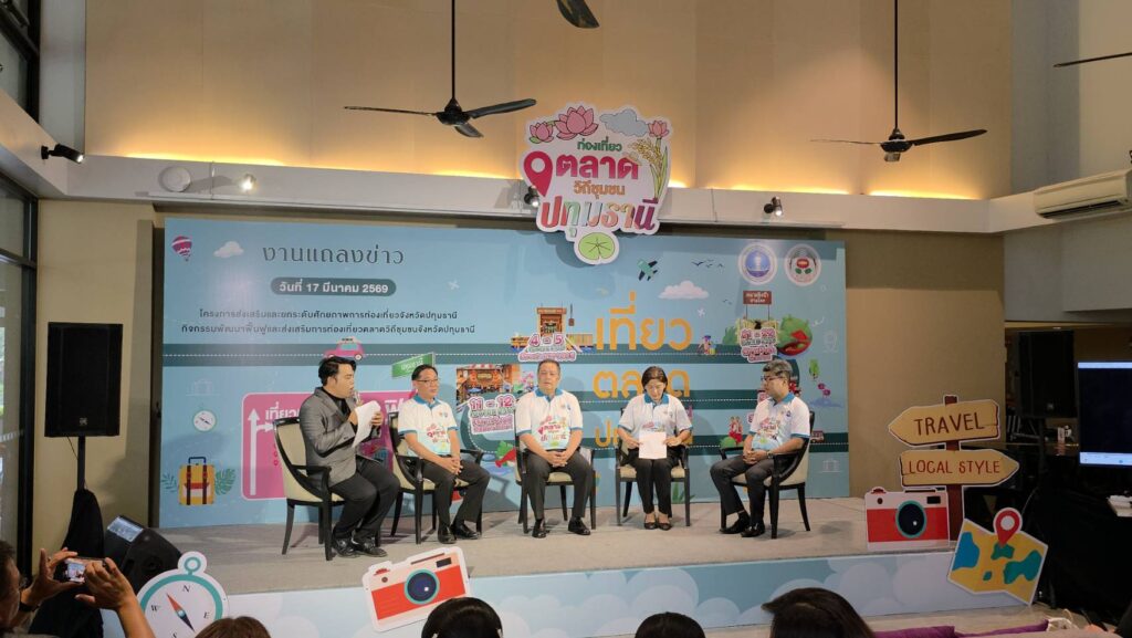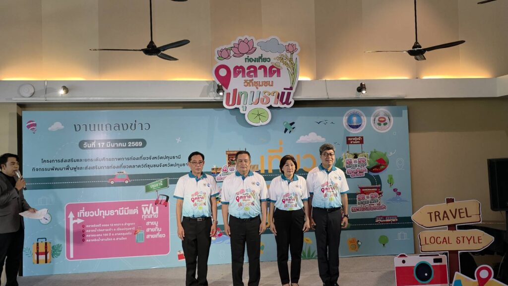 เมื่อวันที่ 17 มีนาคม 2569 จังหวัดปทุมธานี โดยสำนักงานการท่องเที่ยวและกีฬาจังหวัดปทุมธานี จัดงานแถลงข่าวเปิดตัว “โครงการส่งเสริมและยกระดับศักยภาพการท่องเที่ยวจังหวัดปทุมธานี” ภายใต้กิจกรรมพัฒนาฟื้นฟูและส่งเสริมการท่องเที่ยวตลาดวิถีชุมชน ณ โรงแรมทินิดี บางกอก กอล์ฟ คลับ เพื่อดึงดูดนักท่องเที่ยวและกระจายรายได้สู่ชุมชนอย่างยั่งยืน โดยมีนายเอกวิทย์ มีเพียร ผู้ว่าราชการจังหวัดปทุมธานี เป็นประธานในพิธีแถลงข่าว พร้อมด้วยผู้บริหารจากหน่วยงานที่เกี่ยวข้อง ร่วมกันเปิดตัวกิจกรรมที่จะจัดขึ้นในตลาดเก่าชื่อดัง 4 แห่งของจังหวัด เพื่อโชว์อัตลักษณ์วิถีชีวิตริมน้ำ อาหารอร่อย และของดีประจำท้องถิ่น