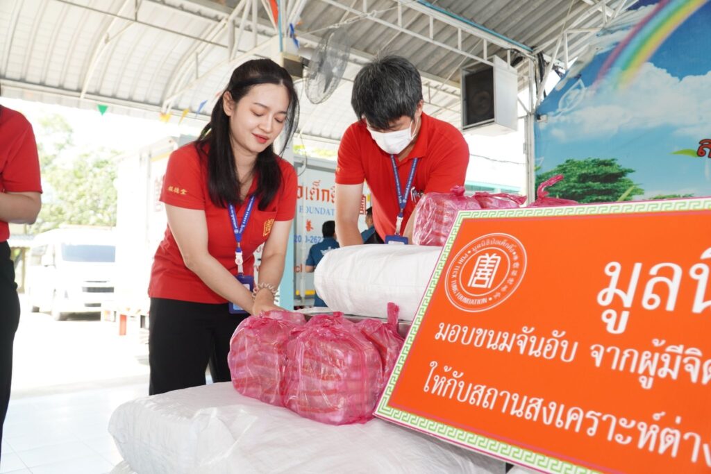 วันนี้ (วันพุธที่ 18 มีนาคม พ.ศ. 2569) มูลนิธิป่อเต็กตึ๊ง โดย นางศิริพร กระจ่างหล้า ผู้จัดการฝ่ายสังคมสงเคราะห์ พร้อมด้วย นายพิทักษ์พนธ์ ถูกจิตต์ รักษาการผู้ช่วยหัวหน้าแผนกส่งเสริมการศึกษาและอาชีพ นำเจ้าหน้าที่ลงพื้นที่ส่งมอบขนมมงคล [ขนมจันอับ] ที่ผู้มีจิตศรัทธาได้ร่วมทำบุญบริจาคให้กับสถานสงเคราะห์เด็ก ผู้พิการ และผู้ยากไร้ เนื่องในเทศกาลตรุษจีน ประจำปี 2569 ในพื้นที่จังหวัดนครปฐม และนนทบุรี รวม 10 แห่ง ประกอบด้วย สถานคุ้มครองและพัฒนาคนพิการ บ้านนนทภูมิ บ้านราชาวดี (ชาย) บ้านราชาวดี (หญิง) และสถานคุ้มครองคนไร้ที่พึ่ง อำเภอปากเกร็ด จังหวัดนนทบุรี สถานพินิจและคุ้มครองเด็กและเยาวชนจังหวัดนนทบุรี อำเภอไทรน้อย จังหวัดนนทบุรี ศูนย์ฝึกอบรมเด็กและเยาวชนชาย บ้านอุเบกขา และมูลนิธิหลวงตาน้อย อำเภอพุทธมณฑล จังหวัดนครปฐม ศูนย์ฝึกอบรมเด็กและเยาวชนบ้านปราณี อำเภอสามพราน ศูนย์คุ้มครองคนไร้ที่พึ่งจังหวัดนครปฐม อำเภอเมือง และสถานพินิจและคุ้มครองเด็กและเยาวชนฯ อำเภอกำแพงแสน จังหวัดนครปฐม โดยมีผู้แทนจากหน่วยงานต่างๆ เป็นผู้รับมอบ รวมจำนวนขนมมงคล [ขนมจันอับ] ที่มูลนิธิป่อเต็กตึ๊ง เป็นสะพานบุญผู้มีจิตศรัทธา แจกจ่ายให้กับสถานสงเคราะห์ผู้พิการและผู้ยากไร้เนื่องในเทศกาลตรุษจีน ประจำปี 2569 ทั้งสิ้น 34,000 ห่อ คิดเป็นมูลค่ากว่า 3 แสนบาท