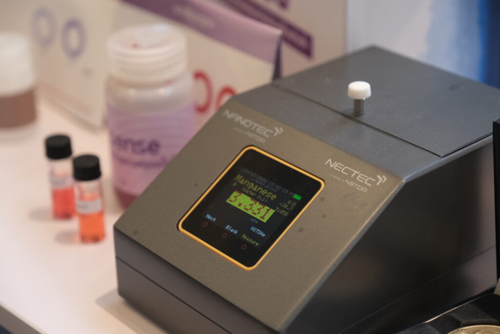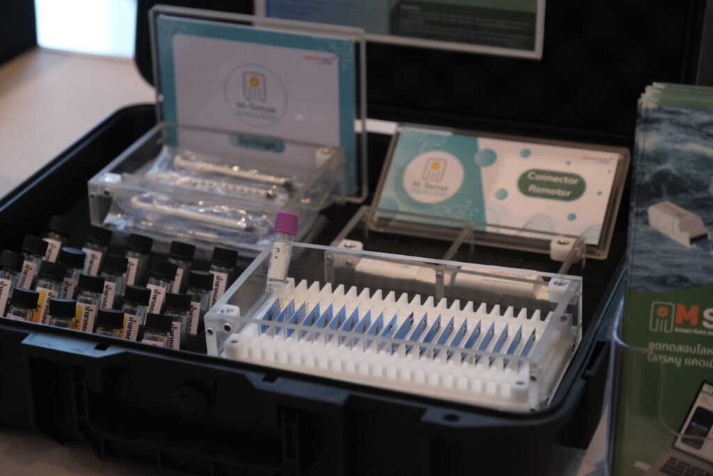 ดร.วีรกัญญา มณีประกรณ์ ผู้อำนวยการกลุ่มวิจัยวัสดุตอบสนองและเซ็นเซอร์ระดับนาโน (RMNS) ศูนย์นาโนเทคโนโลยีแห่งชาติ (นาโนเทค) (สวทช.) กล่าวว่า การตรวจสอบคุณภาพน้ำมีข้อจำกัดเรื่องของต้นทุน ระยะเวลารอผล และความสะดวก ทำให้ในหลายพื้นที่มีการตรวจสอบคุณภาพน้ำเฉลี่ยเพียงปีละ 1 ครั้งตามกฎหมายกำหนดเท่านั้น ซึ่งอาจไม่เพียงพอ เพราะคุณภาพของน้ำจะเปลี่ยนแปลงไปตามฤดูกาล รวมถึงการดำเนินกิจกรรมต่างๆ ของมนุษย์ สิ่งเหล่านี้กลายเป็นโจทย์วิจัยของนาโนเทค นำไปสู่การวิจัยและพัฒนา ‘ชุดตรวจวัดสารเคมีในน้ำ ChemSense’ ชุดตรวจโลหะและสารเคมีปนเปื้อนในน้ำ อาทิ แมงกานีส ทองแดง เหล็ก ฟลูออไรด์ นอกจากนี้ ยังร่วมกับศูนย์เทคโนโลยีอิเล็กทรอนิกส์และคอมพิวเตอร์แห่งชาติ (เนคเทค) พัฒนาอุปกรณ์เสริม ‘DuoEye Reader’ ซึ่งเป็นอุปกรณ์ IoT (Internet of Things) สำหรับประมวลผลปริมาณโลหะปนเปื้อนในน้ำที่แจ้งผลแบบ Real time