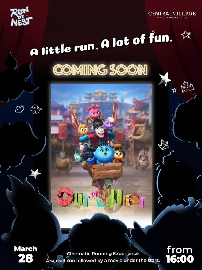 จะมีสักกี่ครั้งที่คุณจะได้สัมผัสกับบรรยากาศหนังการแปลงในพื้นที่เมืองอย่าง Central Village Outlet ซึ่งเป็น Luxury Outlet ในย่านสุวรรณภูมิ แฟน ๆ สายวิ่งสายสุขภาพ ที่นอกจากจะสนุกกับการบรรยากาศของการวิ่งโดยมีเหล่ามาสคอตมาสร้างสีสันตลอดเส้นทาง ก่อนจะได้สัมผัสกับบรรยากาศการชมองครักษ์พิทักษ์เจี๊ยบ (Out of the Nest) ที่เนรมิตพื้นที่ไลฟ์สไตล์ให้กลายเป็นลานฉายภาพยนตร์ขนาดใหญ่กลางแจ้ง พร้อมรองรับผู้ชมทุกวัยที่จะได้อรรถรสในการชมมากยิ่งขึ้น โดยกิจกรรมนี้จึงไม่เพียงเป็นความบันเทิงสำหรับผู้ชมเท่านั้น แต่ยังสะท้อนแนวคิดการนำเอาภาพยนตร์ออกสู่พื้นที่เมือง สร้างประสบการณ์ใหม่ในการชมภาพยนตร์ โดยเชิญชวนผู้ชมทุกเพศทุกวัยมาร่วมสัมผัสค่ำคืนแห่งความสนุกและจินตนาการไปกับ Out of the Nest พร้อมเพลิดเพลินกับบูธอาหารในโซน Food & Lifestyle Zone พร้อมกิจกรรมที่จะสร้างความสนุกในสุดสัปดาห์ พร้อมรับของที่ระลึกสำหรับผู้ร่วมงานโดยสามารถลงทะเบียนร่วมกิจกรรมได้ฟรีที่ https://www.zipeventapp.com/e/RUNdeNEST