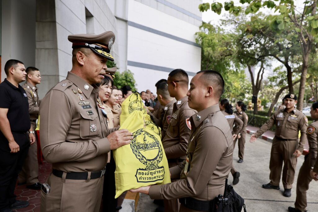 วันที่ 20 มี.ค.2569 เวลาประมาณ 16.00 น. : พล.ต.ท.สยาม บุญสม ผบช.น. พร้อมด้วย พล.ต.ต.พัลลภ แอร่มหล้า รองผบช.น.,พล.ต.ต.ทินกร สมวันดี ผบก.อก.บช.น.,คณะ กต.ตร.กทม.,คุณสุชาติ อำนาจวิภาวี,คุณบัญชา รัชตวุฒิมงคล,คุณวีรพงศ์ เกษดำรงพาณิชย์,คุณจิรัฏฐ์ ประชาเสรีทัยวัต,คุณฐานิญา ผิวพรรณ กรรมการบริหารสมาคมแม่บ้านตำรวจ,คุณสมฤทัย บุญสม ประธานชมรมแม่บ้านตำรวจนครบาล พร้อมคณะชมรมแม่บ้านตำรวจนครบาล ร่วมกันมอบถุงยังชีพ,ไข่ไก่,ข้าวสาร แก่ข้าราชการตำรวจสังกัด บก.จร. จำนวน 150 นาย โดยมี พล.ต.ต.ดำรงศักดิ์ สว่างงาม ผบก.จร.,รอง ผบก.จร. และ ผกก. ในสังกัด บก.จร. พร้อมด้วยข้าราชการตำรวจ บก.จร. ให้การต้อนรับ