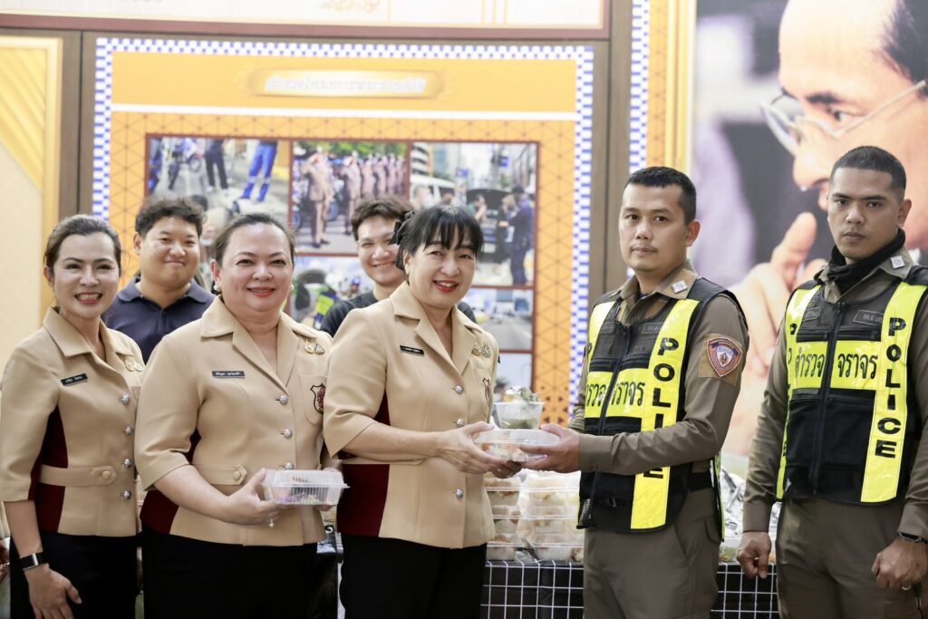 จากนั้น พล.ต.ท.สยาม บุญสม ผบช.น. ได้นำ อาหาร-เครื่องดื่ม มามอบให้ และได้ร่วมรับประทานพร้อมกำลังพล
