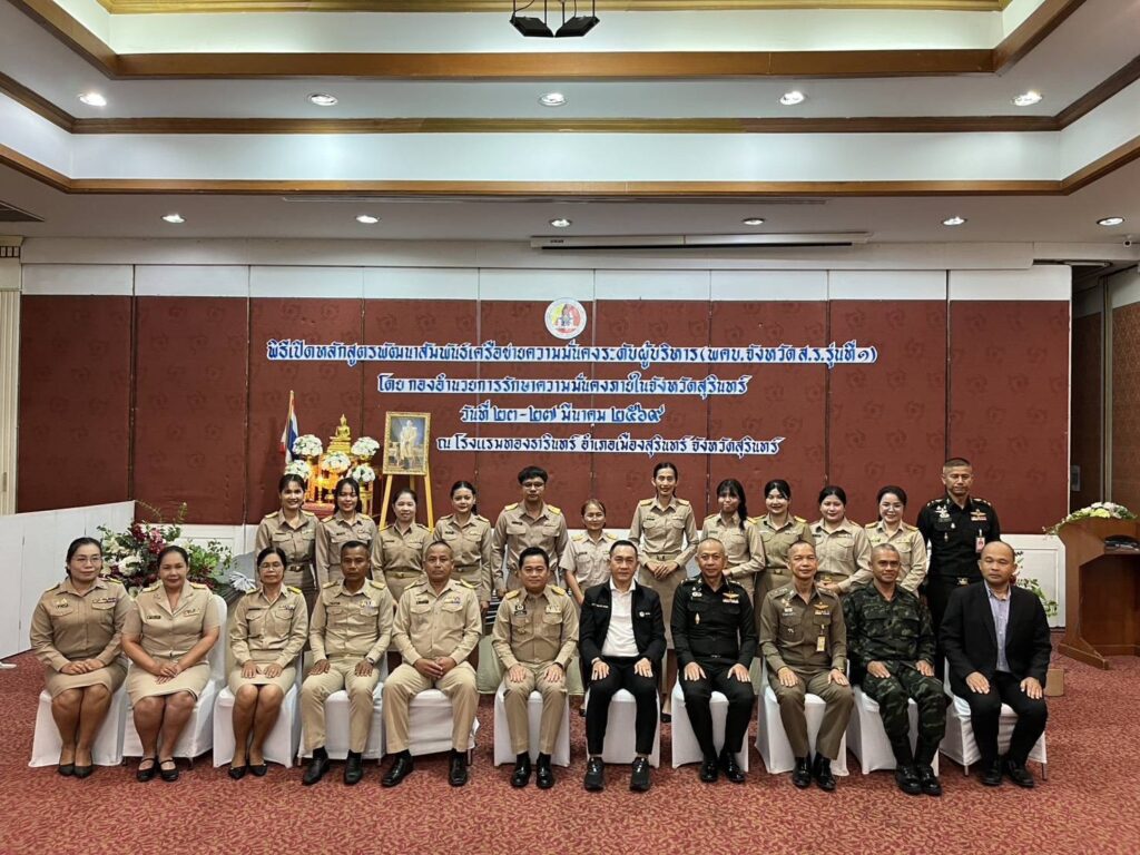กองอำนวยการรักษาความมั่นคงภายในราชอาณาจักร (กอ.รมน.) โดย สำนักกิจการมวลชนและสารนิเทศ กอ.รมน. (สมท.กอ.รมน.) เดินหน้าขับเคลื่อนการเสริมสร้างความมั่นคงในระดับพื้นที่ จัดการอบรม “หลักสูตรพัฒนาสัมพันธ์เครือข่ายความมั่นคงระดับผู้บริหาร” ของ กอ.รมน.จังหวัดสุรินทร์ (พคบ.จังหวัด ส.ร.) รุ่นที่ 1 ประจำปี 2569 ณ จังหวัดสุรินทร์