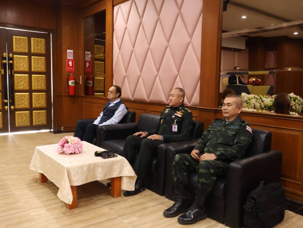 ในช่วงท้ายของการอบรม ครูเพชรในตมของจังหวัดสุรินทร์ ได้เข้าร่วมพบปะและแลกเปลี่ยนความคิดเห็นด้านความมั่นคงกับพลโทธนาธิปฯ และรองผู้ว่าราชการจังหวัดสุรินทร์ (ฝ่ายทหาร) โดยมีการหารือถึงแนวทางการบูรณาการความร่วมมือระหว่างหน่วยงานในทุกภาคส่วน เพื่อเสริมสร้างความพร้อมในการรองรับสถานการณ์ในอนาคตอย่างเป็นรูปธรรม และร่วมกันขับเคลื่อนความมั่นคงของพื้นที่ให้เกิดความยั่งยืน