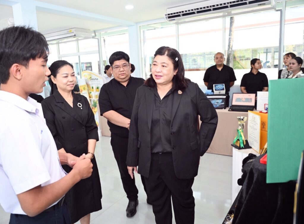 เมื่อวันที่ 27 มีนาคม 2569 สำนักงานการวิจัยแห่งชาติ (วช.) กระทรวงการอุดมศึกษา วิทยาศาสตร์ วิจัยและนวัตกรรม (อว.) โดย ดร.วิภารัตน์ ดีอ่อง ผู้อำนวยการสำนักงานการวิจัยแห่งชาติ (ผวช.) พร้อมด้วยคณะผู้ทรงคุณวุฒิ (วช.) ตรวจเยี่ยมการต่อยอดและสร้างมูลค่าสิ่งประดิษฐ์และนวัตกรรมทีมอาชีวศึกษา ที่ได้รับรางวัลระดับประเทศและนานาชาติจากการสนับสนุสของ (วช.) โดยมีนางสาวอรทัย สุวรรณมณี รองผู้อำนวยการฝ่ายแผนงานและความร่วมมือ วิทยาลัยอาชีวศึกษาภูเก็ต และคณาจารย์ให้การต้อนรับ ณ วิทยาลัยอาชีวศึกษาภูเก็ต จ.ภูเก็ต
