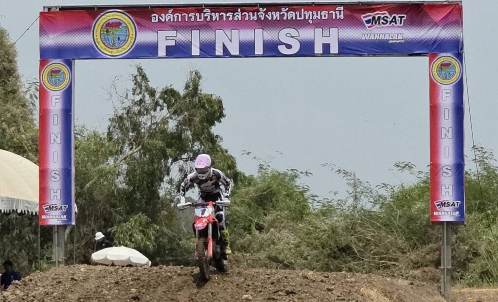 สำหรับไฮไลท์สำคัญรุ่น MX1 450cc ซึ่งเป็นการประชันความเร็วของยอดนักบิดระดับแถวหน้า ผลปรากฏว่า “น้องนีโม่” นายจิรัฎฐ์ วรรณลักษณ์ นักบิดวัย 20 ปี ลูกหลานชาวอำเภอหนองเสือ เจ้าของดีกรีนักแข่งระดับเอเชีย ยังคงโชว์ฟอร์มสมราคาแชมป์เก่า ควบรถคู่ใจฝ่าอุปสรรคเข้าเส้นชัยเป็นอันดับ 1 ป้องกันแชมป์ในบ้านเกิดได้สำเร็จ ท่ามกลางเสียงเชียร์กึกก้องและการร่วมแสดงความยินดีจากครอบครัว นำโดย นายพิษณุ เกิดศิริ ผู้สนับสนุนหลักเบื้องหลังความสำเร็จในครั้งนี้