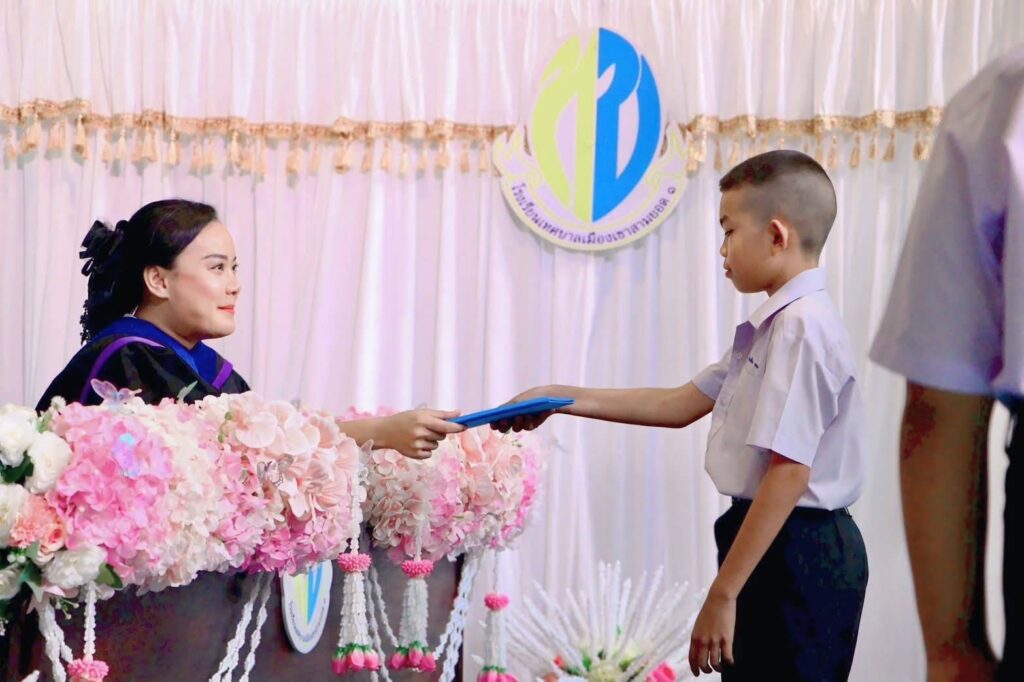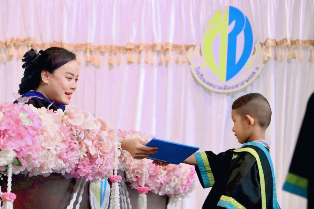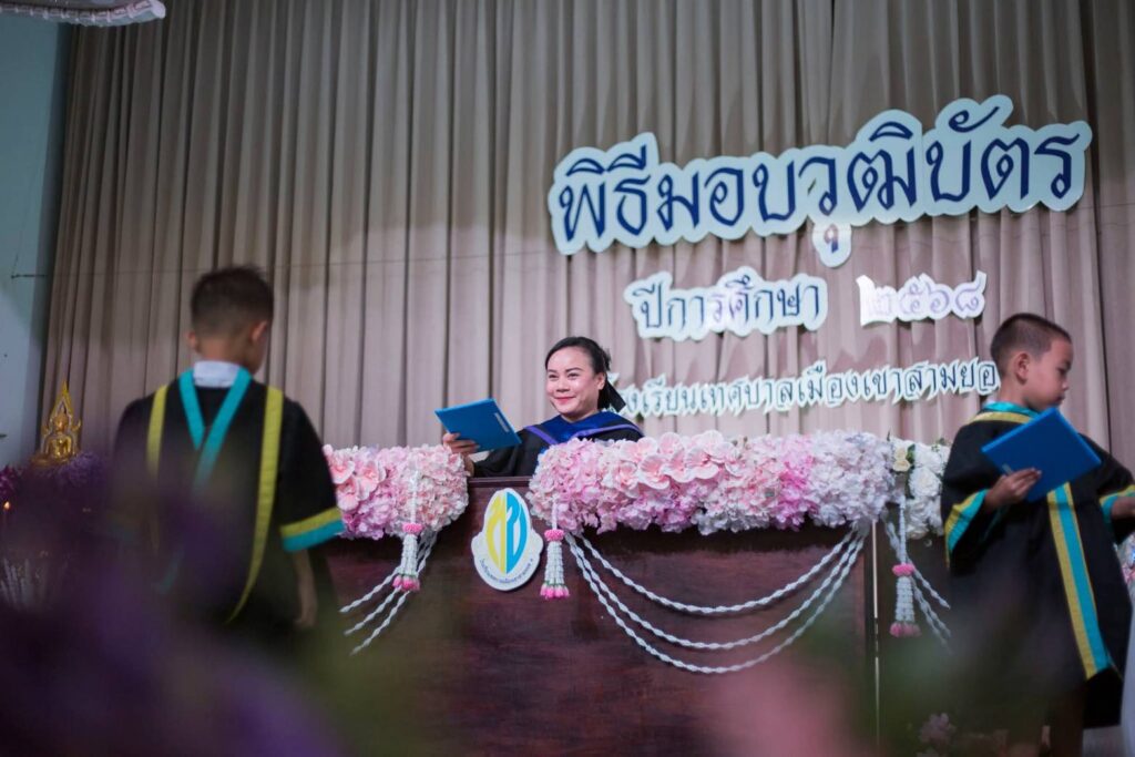 นางสาววไลศิริ ปาตั๋น นายกเทศมนตรีเมืองเขาสามยอด เป็นประธานในพิธีมอบวุฒิบัตรให้กับ นักเรียนที่สำเร็จการศึกษา ระดับชั้นอนุบาลปีที่ 3 และระดับชั้นประถมศึกษาปีที่ 6 โรงเรียนเทศบาลเมืองเขาสามยอด 1 สังกัดเทศบาลเมืองเขาสามยอด ภายใต้โครงการส่งเสริมความภาคภูมิใจในการศึกษา ประจำปีการศึกษา 2568 พร้อมด้วยคณะผู้บริหาร หัวหน้าส่วนราชการ คณะกรรมการสถานศึกษาขั้นพื้นฐาน คณะครู และผู้ปกครอง เพื่อส่งเสริมให้น้องๆ นักเรียนเกิดความภาคภูมิใจในความสำเร็จของตนเอง กล้าคิดกล้าแสดงออก และสร้างแรงบันดาลใจให้กับเด็กในการที่จะเข้ารับการศึกษาต่อไปในระดับที่สูงขึ้น