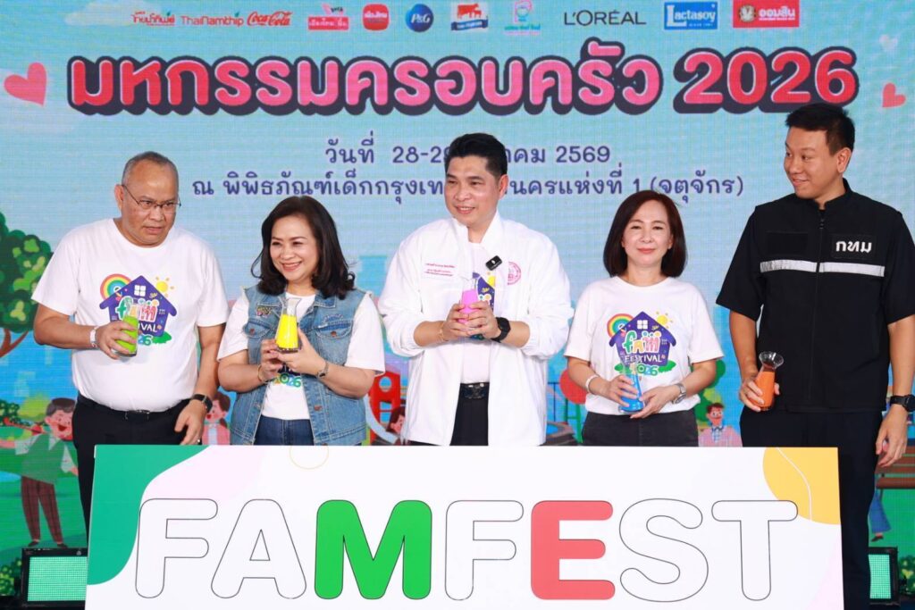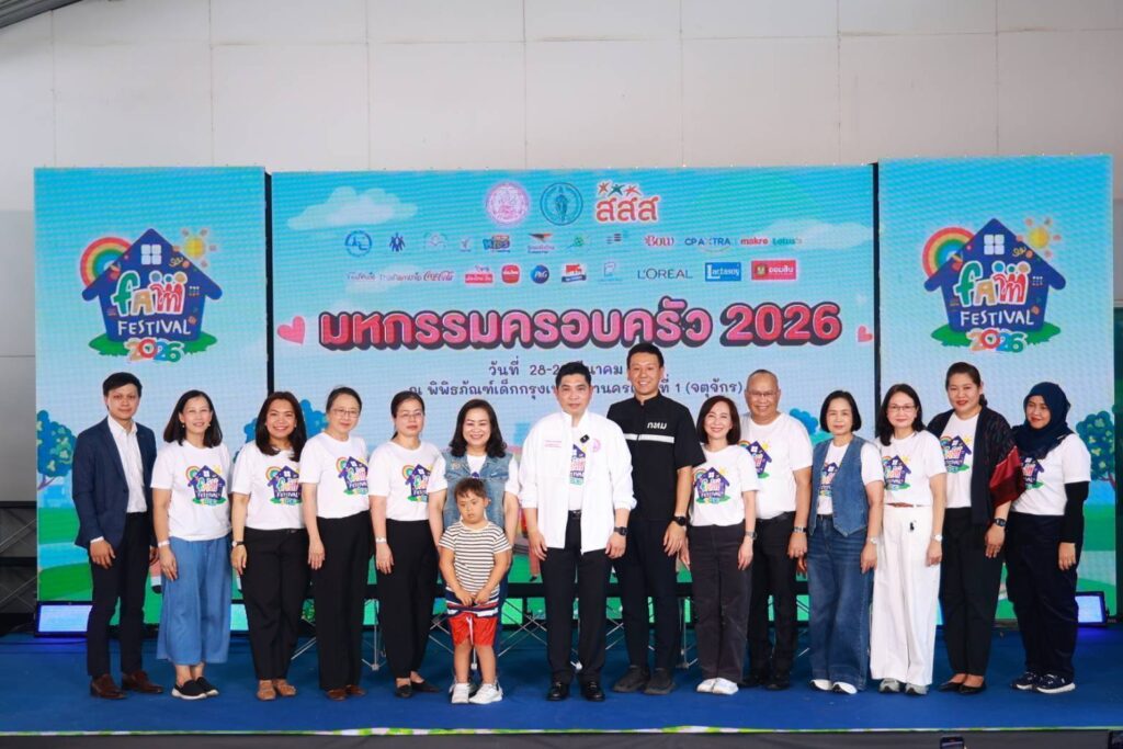 กระทรวงการพัฒนาสังคมและความมั่นคงของมนุษย์ (พม.) โดยกรมกิจการสตรีและสถาบันครอบครัว (สค.) ร่วมกับสำนักงานกองทุนสนับสนุนการสร้างเสริมสุขภาพ (สสส.) และกรุงเทพมหานคร (กทม.) จัดงาน “มหกรรมครอบครัว (FAM FESTIVAL 2026)” ภายใต้แนวคิด“COSMIC FAMILY – Always Together: ใกล้ใจ ไม่ไกลกัน” เพื่อเปิดพื้นที่ให้เด็กและครอบครัวได้ใช้เวลาร่วมกันอย่างสร้างสรรค์ โดยมีนายกองตรี ดร.ธนกฤต จิตรอารีย์รัตน์ เลขานุการรัฐมนตรีว่าการกระทรวงการพัฒนาสังคมและความมั่นคงของมนุษย์เป็นประธานเปิดงานและมอบรางวัล “ครอบครัวสร้างสุข” พร้อมด้วยนายศานนท์ หวังสร้างบุญ รองผู้ว่าราชการกรุงเทพมาหานคร และนางภรณี ภู่ประเสริฐ ผู้ช่วยผู้จัดการกองทุนสนับสนุนการสร้างเสริมสุขภาพ และรักษาการผู้อำนวยการสำนักสนับสนุนสุขภาวะเด็ก เยาวชน และครอบครัว (สสส.) ทั้งนี้ นางสาวจตุพร โรจนพานิช อธิบดีกรมกิจการสตรีและสถาบันครอบครัว คณะผู้บริหารกระทรวง พม. ผู้แทนหน่วยงานที่เกี่ยวข้อง ประชาชนทั่วไป และสื่อมวลชน เข้าร่วมงาน ณ พิพิธภัณฑ์เด็กกรุงเทพมหานครแห่งที่ 1 (จตุจักร) กรุงเทพฯ