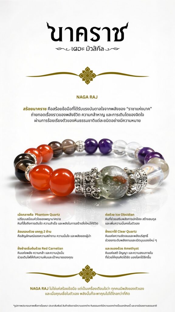 3.รับสร้อยข้อมือ หินมงคล “นาคราช” จำนวน 1 เส้น มูลค่า 1,499 บาท แรงบันดาลใจจากพลังแห่งราชานาค สื่อถึงพลังชีวิต ความกล้าหาญ และการเติบโตของจิตใจ ผ่านการร้อยเรียงหินธรรมชาติอย่างมีความหมาย ทั้งหมด ในราคาเพียง 3,000 บาท เท่านั้น