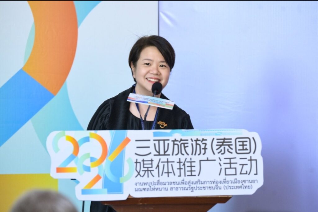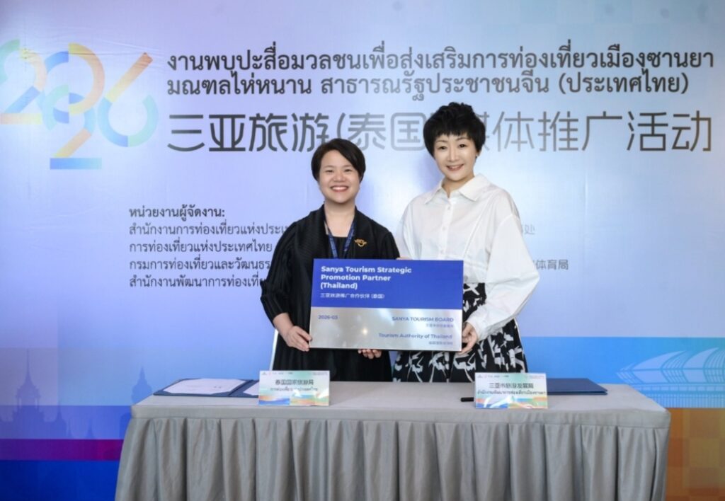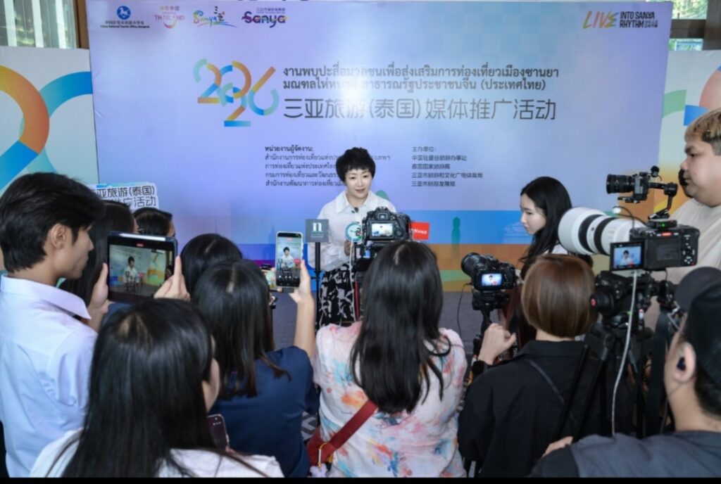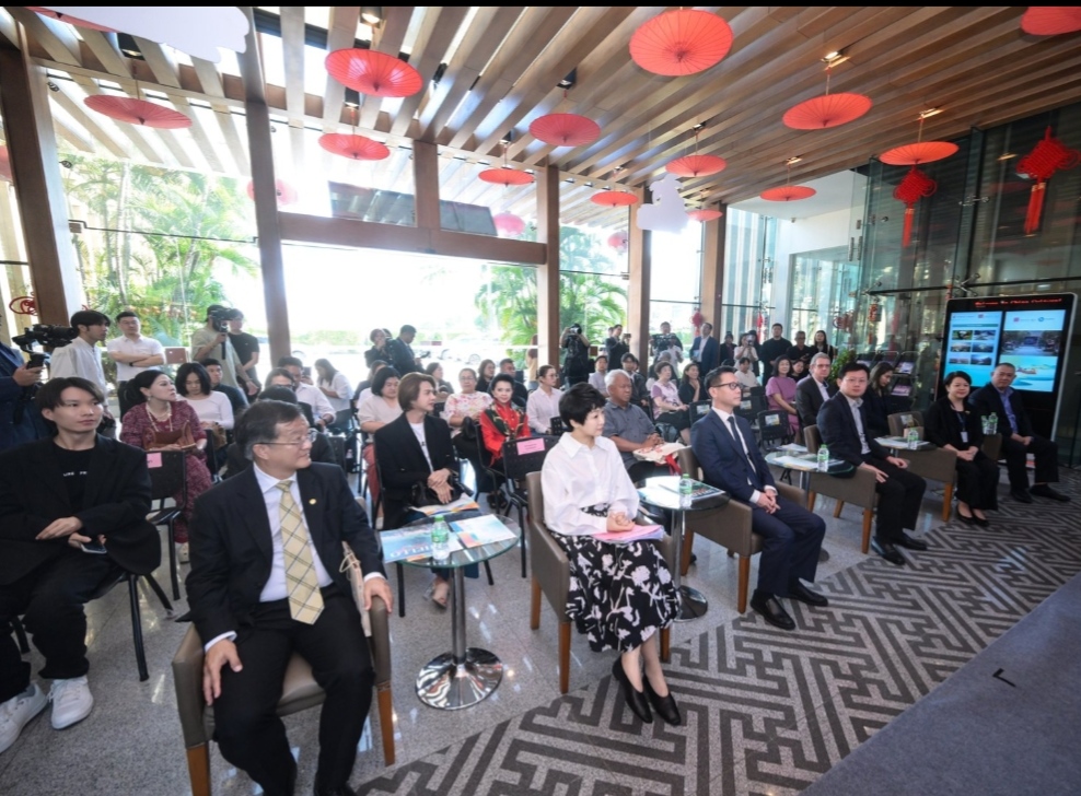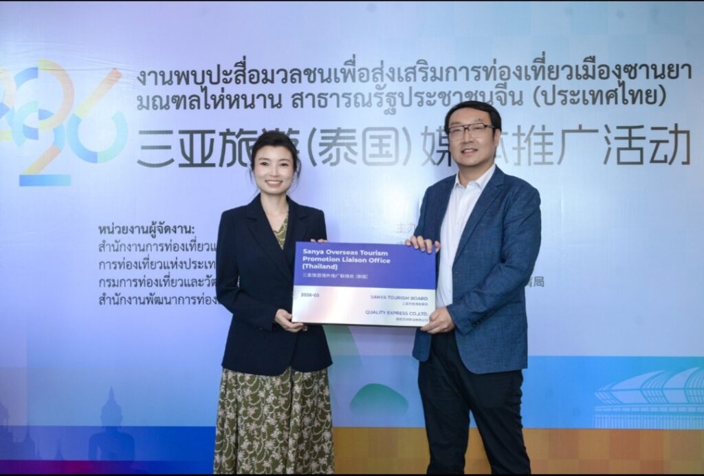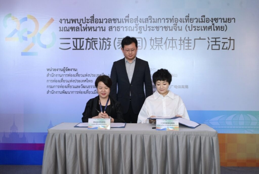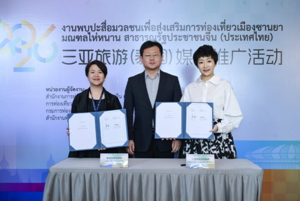 ายหยาง เสี่ยวหลง ที่ปรึกษาฝ่ายวัฒนธรรมแห่งสถานเอกอัครราชทูตสาธารณรัฐประชาชนจีนประจำประเทศไทย และนางสิริเกศอนงค์ ไตรรัตนทรงพล ผู้อำนวยการภูมิภาคเอเชียตะวันออก การท่องเที่ยวแห่งประเทศไทย ได้กล่าวสุนทรพจน์ตามลำดับ โดยต่างแสดงความชื่นชมต่อรากฐานอันมั่นคงและแนวโน้มอันกว้างไกลของความร่วมมือด้านวัฒนธรรมและการท่องเที่ยวระหว่างจีนกับไทย พร้อมคาดหวังว่าจะใช้กิจกรรมครั้งนี้เป็นโอกาสในการผนึกกำลังความร่วมมือให้แน่นแฟ้นยิ่งขึ้น และผลักดันการแลกเปลี่ยนด้านวัฒนธรรมและการท่องเที่ยวระหว่างสองฝ่ายให้ลึกซึ้งและเป็นรูปธรรมยิ่งขึ้น นายหม่า หนาน รองผู้อำนวยการสำนักงานส่งเสริมและพัฒนาการท่องเที่ยวเมืองซานย่า ได้บรรยายและนำเสนอข้อมูลการท่องเที่ยวเป็นพิเศษ โดยแนะนำอย่างละเอียดถึงจุดเด่นด้านทรัพยากรการท่องเที่ยวของซานย่า กลยุทธ์การตลาดในต่างประเทศ และทิศทางความร่วมมือสำคัญ พร้อมเชิญชวนภาคธุรกิจการท่องเที่ยวของไทยเข้าร่วมความร่วมมือในระดับที่ลึกซึ้งยิ่งขึ้น 活动期间,三亚市旅游发展局与泰国国家旅游局正式签署合作意向书(LOI),泰国国家旅游局东亚司司长郑思睿女士与三亚市旅游发展局副局长马南作为双方代表签约,曼谷中国文化中心兼中国驻曼谷旅游办事处负责人张若愚担任证签人,协议明确双方将在旅游产品开发、达人互访、目的地联合营销、航线加密、招赛招演等方面深化合作,共同打造“曼谷——三亚”跨国王牌旅游路线。签约仪式后,三亚市旅游发展局与泰国旅游观光协会、泰国正好旅业集团揭牌三亚旅游境外推广(泰国)联络处,这是三亚在东南亚设立的首个境外旅游推广机构,负责市场推广、渠道对接及游客服务等工作。在媒体交流环节,泰国国家旅游局东亚司司长郑思睿女士表示,三亚作为成熟的热带滨海度假目的地,对泰国游客具有持续吸引力。未来双方将从各自推广走向协同推广,围绕共同市场与客群深化合作,推动中泰旅游合作实现更高质量发展。