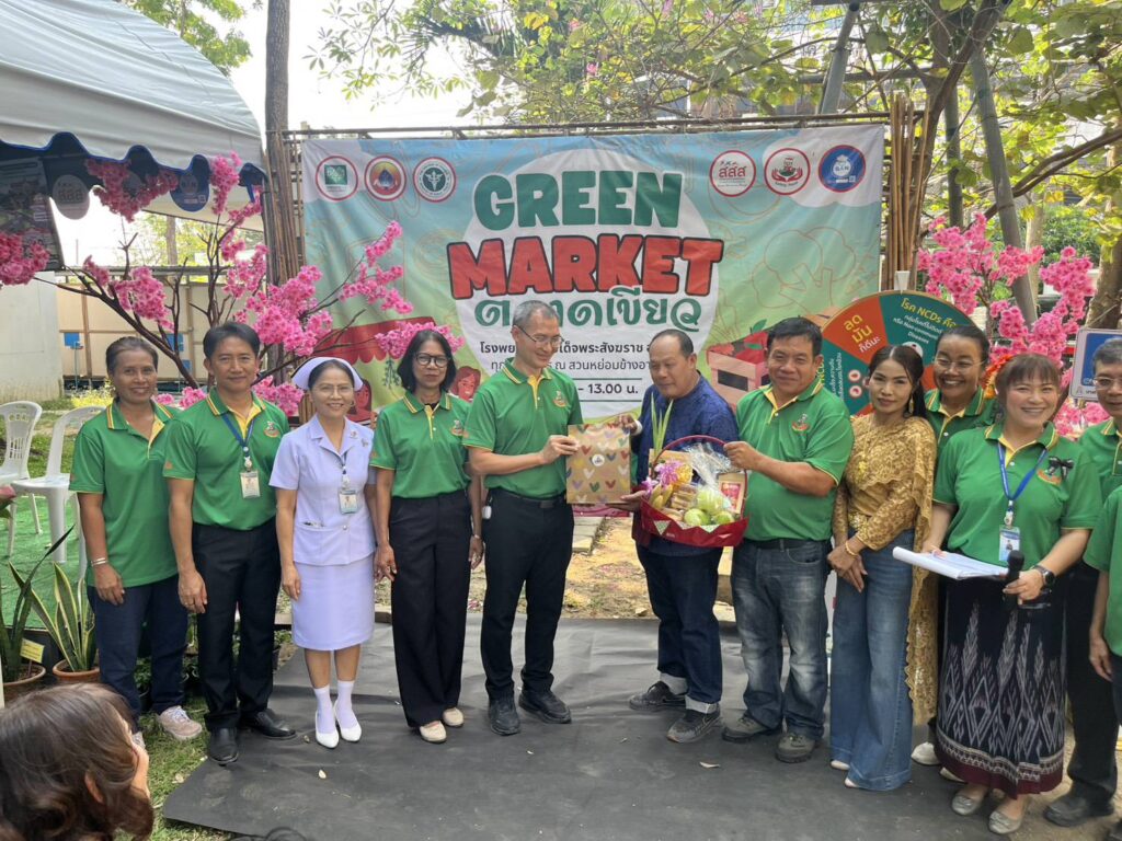 สำหรับ “ตลาดเขียว” ของโรงพยาบาลสมเด็จพระสังฆราช องค์ที่ 17 ถือเป็นส่วนหนึ่งของนโยบาย “โรงพยาบาลอาหารปลอดภัย” (Green Hospital) ของกระทรวงสาธารณสุข ร่วมกับ สสส. และภาคีเครือข่าย เพื่อยกระดับโรงพยาบาลให้เป็นต้นแบบด้านสุขภาวะ โดยเปิดพื้นที่ให้เกษตรกรและกลุ่มวิสาหกิจชุมชนในอำเภอสองพี่น้องและพื้นที่ใกล้เคียง นำผลผลิตเกษตรปลอดภัยและเกษตรอินทรีย์มาจำหน่ายโดยตรง