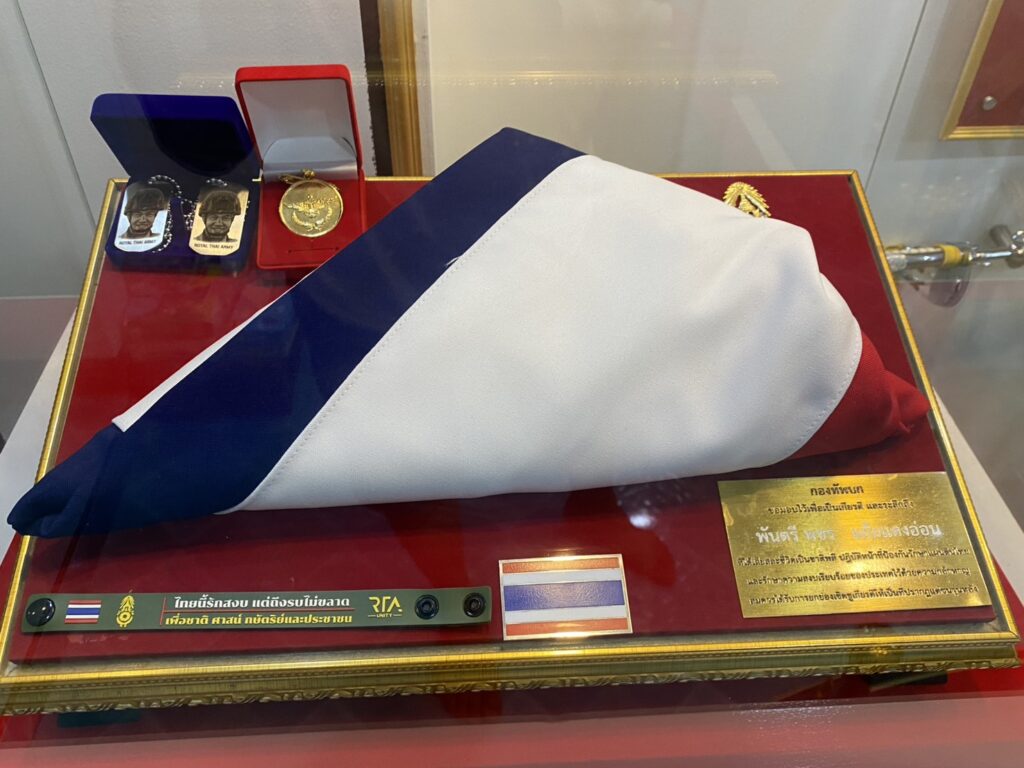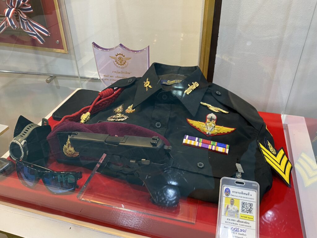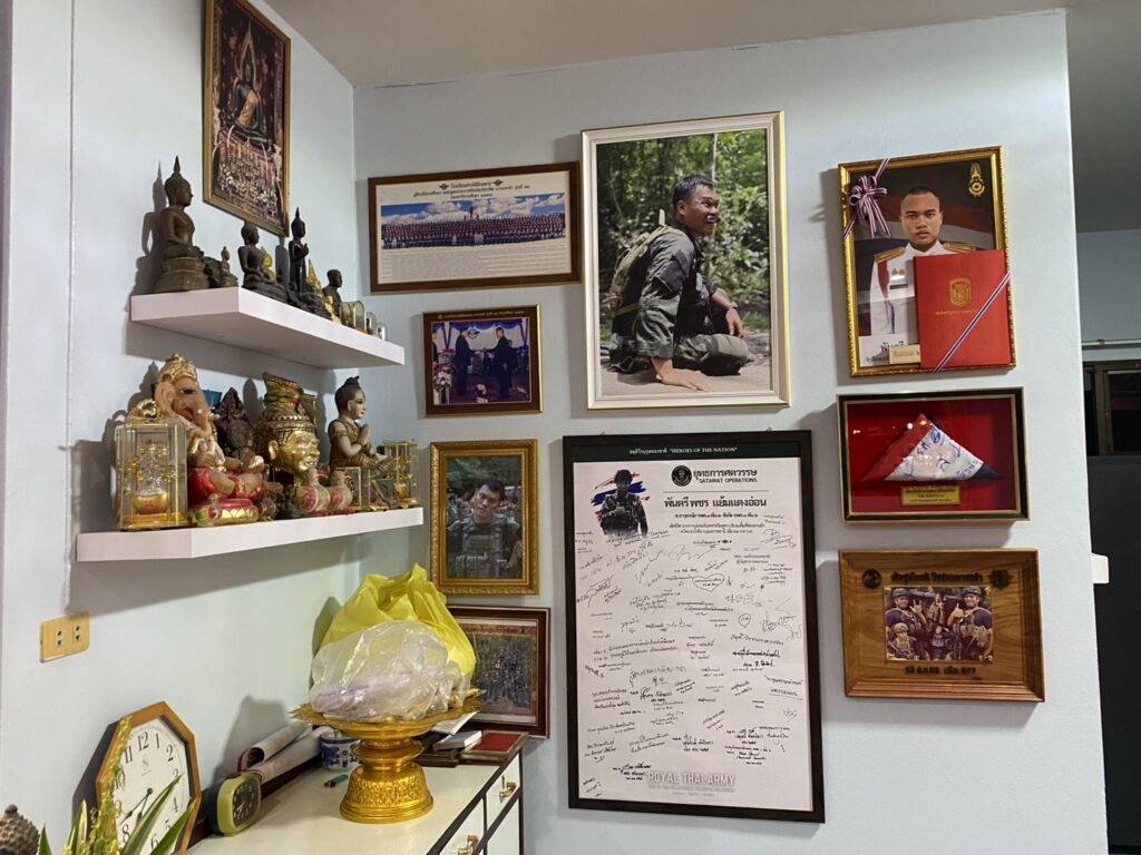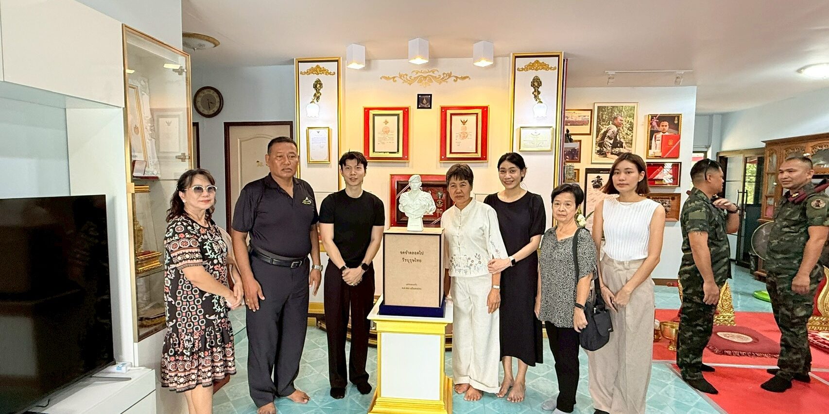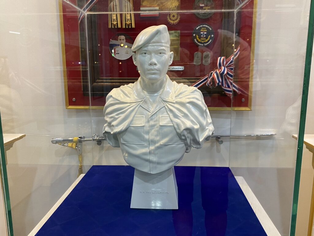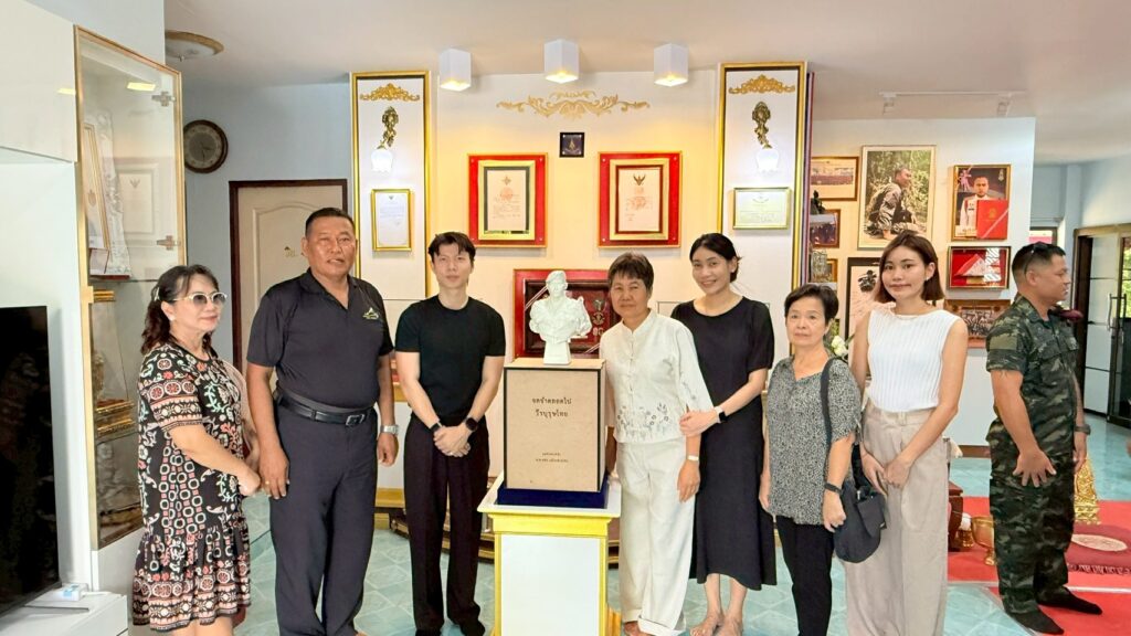 ผู้สื่อข่าวรายงานว่า เมื่อวันที่ 28 มี.ค. 69 ที่บ้านเลขที่ 20/2 หมู่ 1 ต.ถนนใหญ่ อ.เมือง จ.ลพบุรี ซึ่งเป็นบ้านพักของ พ.ต.พชร แย้มแตงอ่อน หรือ “หมู่เกมส์” สังกัดกองพันรบพิเศษที่ 2 กรมรบพิเศษที่ 1 (รพศ.1 พัน.2) รบพิเศษป่าหวาย ลพบุรี ที่พลีชีพกลางสมรภูมิช่องอานม้า เนิน 677 อ.นํ้ายืน จ.อุบลราชธานี ได้มีพิธีทำบุญครบร้อยวันการเสียชีวิตของ”หมู่เกมส์” โดยมีผู้บังคับหน่วย และกำลังพล กองพันรบพิเศษที่ 2 ตลอดจนประชาชนที่ทราบข่าวร่วมงานจำนวนมาก ภายในงาน นายปฏิภาณ โสตถิวิไลพงศ์ หรือ แม็ก ศิลปินดิจิทัลอาร์ต พร้อมครอบครัว ได้นำรูปปั้นเรซิ่นขนาดครึ่งตัว“หมู่เกมส์” มามอบให้แก่ครอบครัว”แย้มแตงอ่อน” เพื่อเป็นสัญลักษณ์แห่งความเสียสละและความกล้าหาญ เป็นการสดุดีทหารกล้าที่ได้พลีชีพปกป้องอธิปไตยของชาติ โดย ร.ท.องอาจ – นางสุนทรี แย้มแตงอ่อน บิดาและมารดา เรือเอกหญิง รุ่งรวิน แย้มแตงอ่อน พี่สาวและ น.ส.ชลิตา ศรีสุข แฟนของหมู่เกมส์ ได้ร่วมรับมอบรูปปั้นดังกล่าวด้วยความซาบซึ้งน้ำใจของ กลุ่มศิลปินดิจิทัลอาร์ต ที่มีให้แก่ครอบครัวทหารกล้า ซึ่งครอบครัวได้นำรูปปั้นจัดวางบริเวณภายในบ้านซึ่งจัดเป็นพื้นที่สดุดี”หมู่เกมส์” อย่างสมเกียรติ