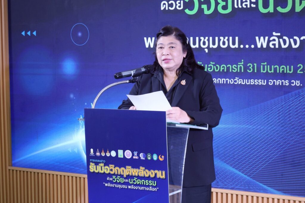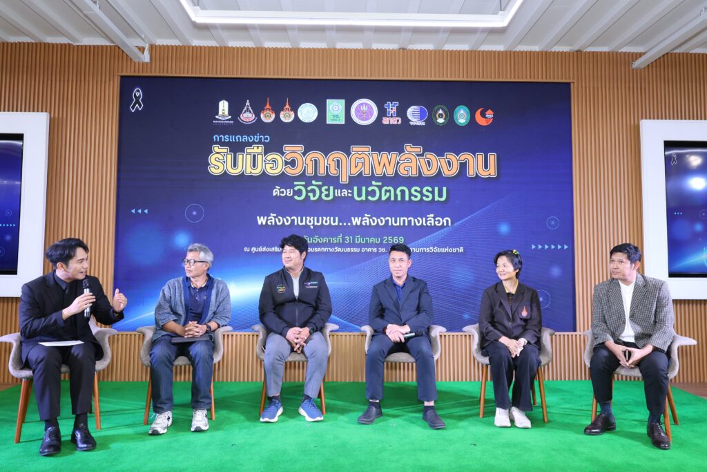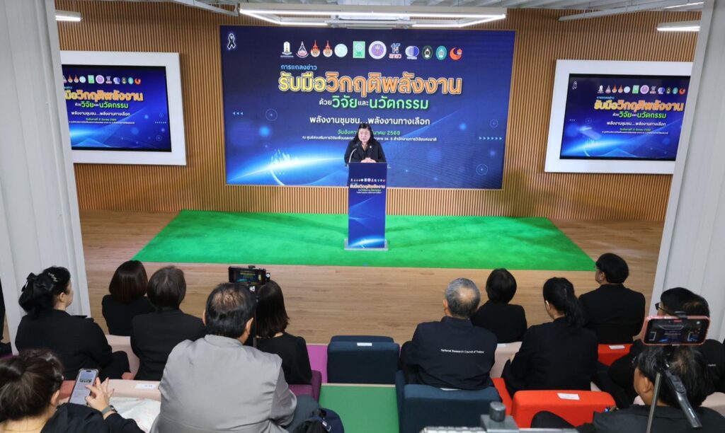 วันที่ 31 มีนาคม 2569 สำนักงานการวิจัยแห่งชาติ (วช.) กระทรวงการอุดมศึกษา วิทยาศาสตร์ วิจัยและนวัตกรรม จัดการแถลงข่าวรับมือวิกฤติพลังงานด้วยวิจัยและนวัตกรรม “พลังงานชุมชน พลังงานทางเลือก” โดย ดร.วิภารัตน์ ดีอ่อง ผู้อำนวยการสำนักงานการวิจัยแห่งชาติ เป็นประธานในพิธีเปิด ณ ศูนย์ส่งเสริมการวิจัยเพื่อมรดกทางวัฒนธรรม สำนักงานการวิจัยแห่งชาติ