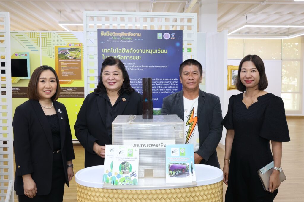 - นวัตกรรม “เทคโนโลยีพลังงานหมุนเวียนในการจัดการขยะ” โดย นายโกศล แสงทอง จากศูนย์วิจัยชุมชนเครือข่ายรวมใจตามรอยพ่อ จังหวัดเพชรบุรี