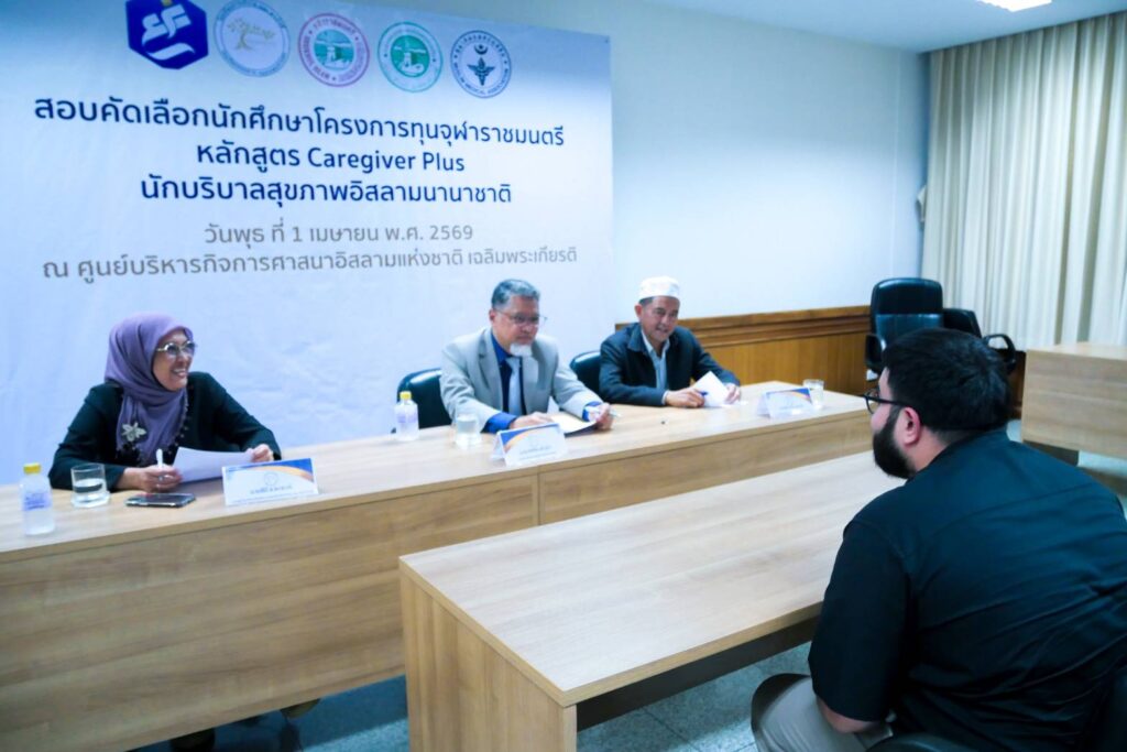 วันที่ 1 เมษายน 2569 ณ ศูนย์บริหารกิจการศาสนาอิสลามแห่งชาติ เฉลิมพระเกียรติ คลองเก้า กรุงเทพมหานคร บริษัท เดอะ พาเร้นส์ เทรนนิ่ง เซ็นเตอร์ จำกัด ร่วมกับโรงเรียนการบริบาล เดอะ พาเร้นส์ จัดการสอบคัดเลือกผู้สมัครเข้ารับ “ทุนจุฬาราชมนตรี” ในหลักสูตร Caregiver Plus (นักบริบาลสุขภาพอิสลามนานาชาติ) ประจำปี 2569 ท่ามกลางความสนใจจากผู้สมัครทั่วประเทศอย่างคึกคัก