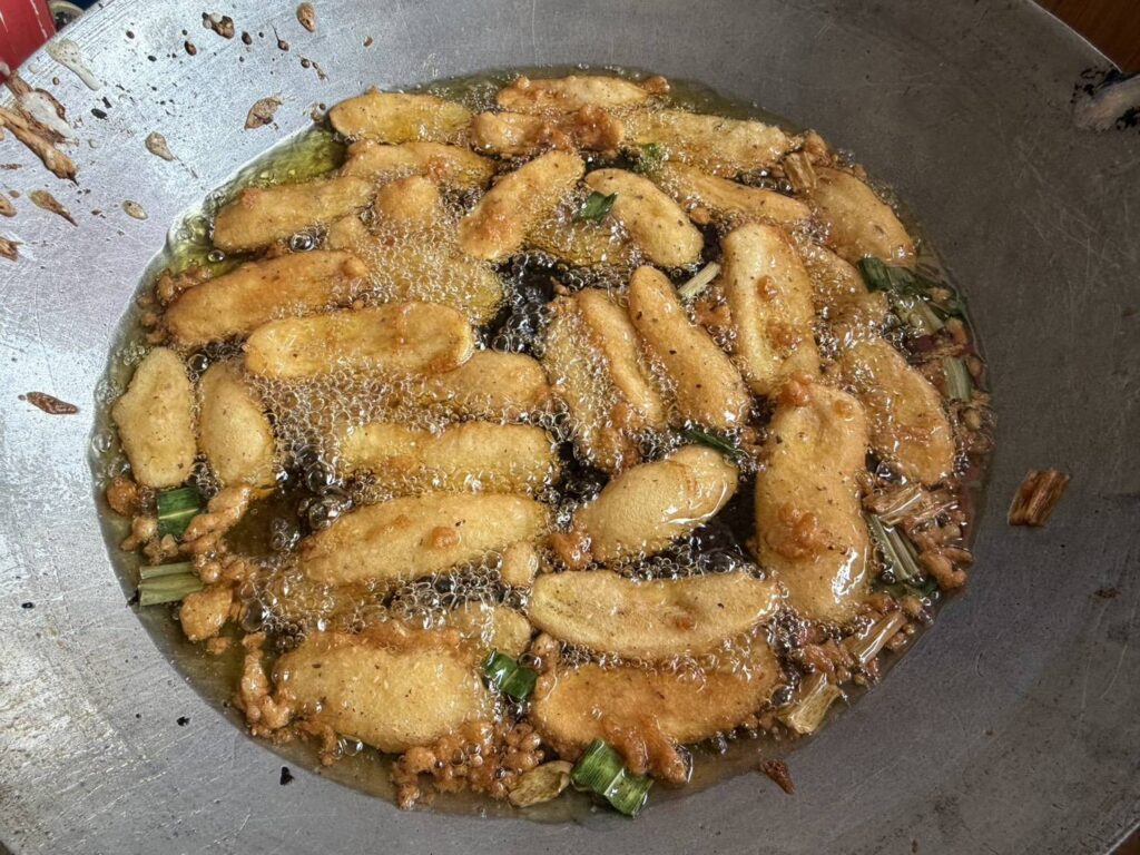 “เจ้นก” เปิดเผยต่อว่า กล้วยทอดสูตรนี้เป็นสูตรแม่ของแม่ตกทอดมาถึงปัจจุบัน ปัจจุบันได้ดัดแปลงสูตรของแม่เพิ่มโดยการผสมแป้งเข้าไปเพิ่ม 3 ชนิด เวลาทอดทิ้งไว้แป้งก็ยังกรอบเหมือนเดิม ใส่มะพร้าวบดผสมเข้าไปเพิ่ม เวลาทอดใส่ใบเตยไปในน้ำมันเพื่อดับกลิ่นของน้ำมันหืน เมื่อก่อนจะใช้ฟืนเป็นเชื้อเพลิง ตอนหลังเปลี่ยนมาเป็นเตาแก๊สเพราะว่าเตาแก๊สควบคุมความร้อนได้ดีกว่ากล้วยจะสุกได้ดีกว่า ข้อเสียของการใช้ฟืนแบบสมัยก่อนมีข้อเสียเยอะ ความร้อนควบคุมยาก และที่สำคัญมีควันไฟแถมกลิ่นควันไฟไปติดที่กล้วยทอด และยังมีฝุ่นขี้เถ้าจากฟืนปลิวหล่นลงไปในกะทะที่ทอดอีก เลยหันมาใช้เตาแก๊สแทน ตอนนี้นับว่าขายดีมากพอมีกำไรเหลือใช้ในครอบครัวไม่ลำบากเหมือนที่ผ่านมา ถ้าใครอยากลิ้มลองกล้วยทอดสูตร 102 ปี ผ่านมาแถวนี้ หรือมาไม่ถูก โทรสั่งจองได้ที่เบอร์ 061-543-6941 เจ๊นก จะยืนคอยต้อนรับอย่างเป็นกันเอง