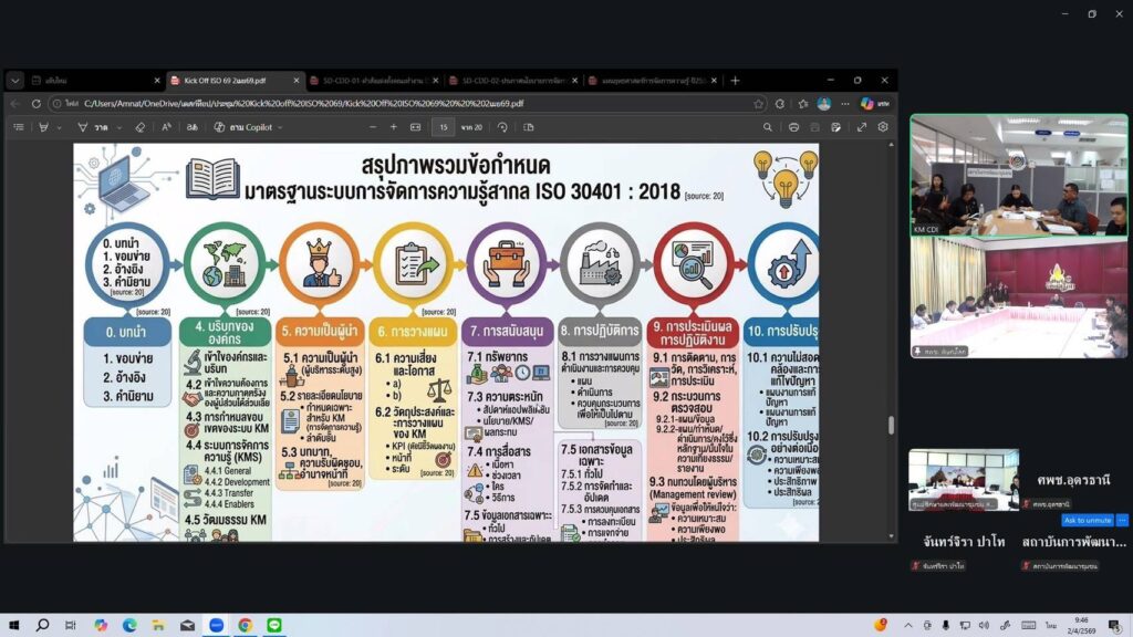 1.ชี้แจงภาพรวมกระบวนการขับเคลื่อนงานรองรับมาตรฐานระบบการจัดการความรู้สากล (ISO 30401 : 2018)