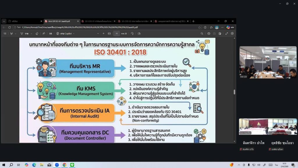 3.ชี้แจงการจัดทำคำสั่งแต่งตั้งคณะทำงานขับเคลื่อนขยายพื้นที่รองรับมาตรฐานระบบการจัดการความรู้สากล (ISO 30401 : 2018) พร้อมชี้แจงบทบาทหน้าที่ของคณะทำงานเพื่อให้เข้าใจถึงกระบวนการดำเนินงานโดยสังเขป