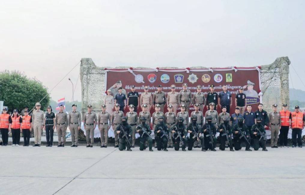 โดยมี พล.ต.ต.ธรรมนูญ เชาวะวนิชย์ ผบก.ภ.จว.สระบุรี พร้อมด้วย รอง ผบก.ภ.จว.สระบุรี, เจ้าหน้าที่ตำรวจ, ทหาร, สำนักงานป้องกันและบรรเทาสาธารณภัยจังหวัดสระบุรี, สำนักงานป้องกันและปราบปรามยาเสพติด ภาค 1, ฝ่ายปกครอง และอาสาสมัครป้องกันภัยฝ่ายพลเรือน จำนวนทั้งสิ้น 269 นาย รถยนต์ 46 คัน ร่วมพิธีฯ ณ ศูนย์ราชการจังหวัดสระบุรี