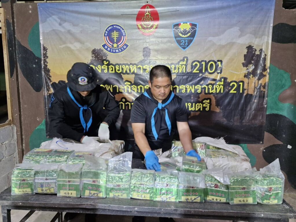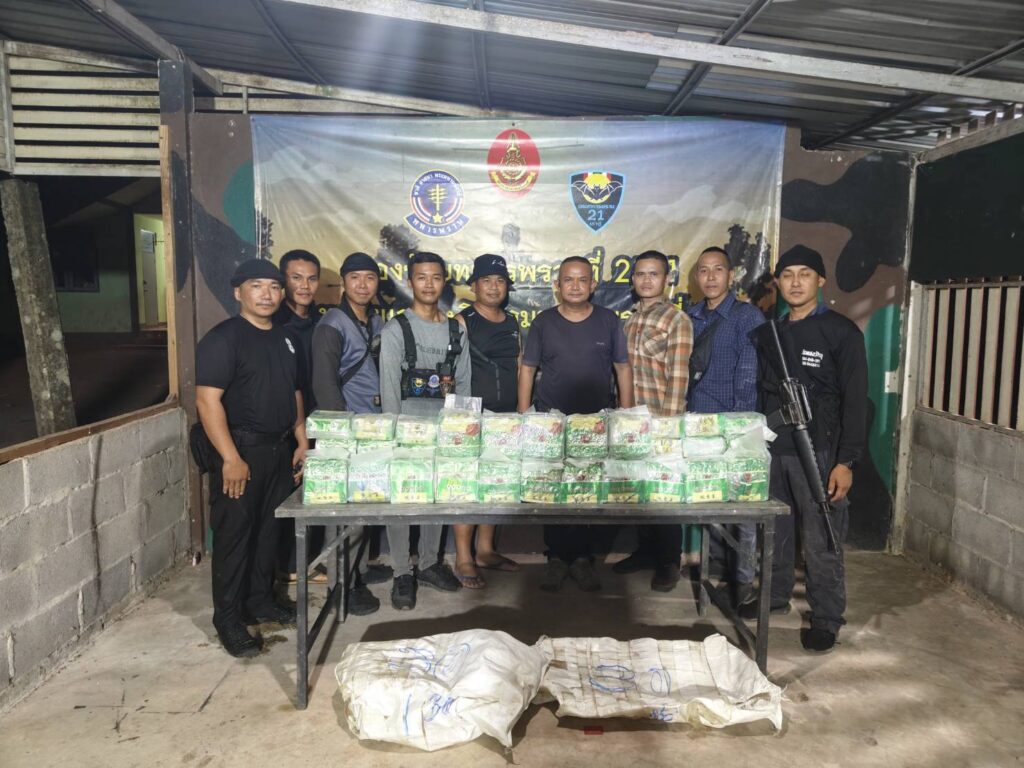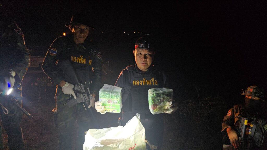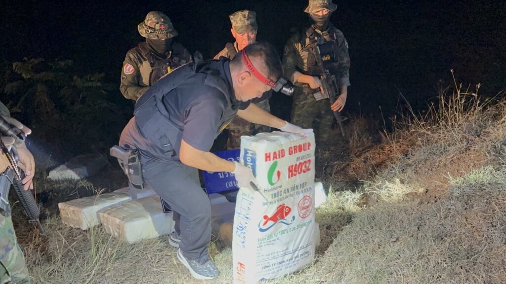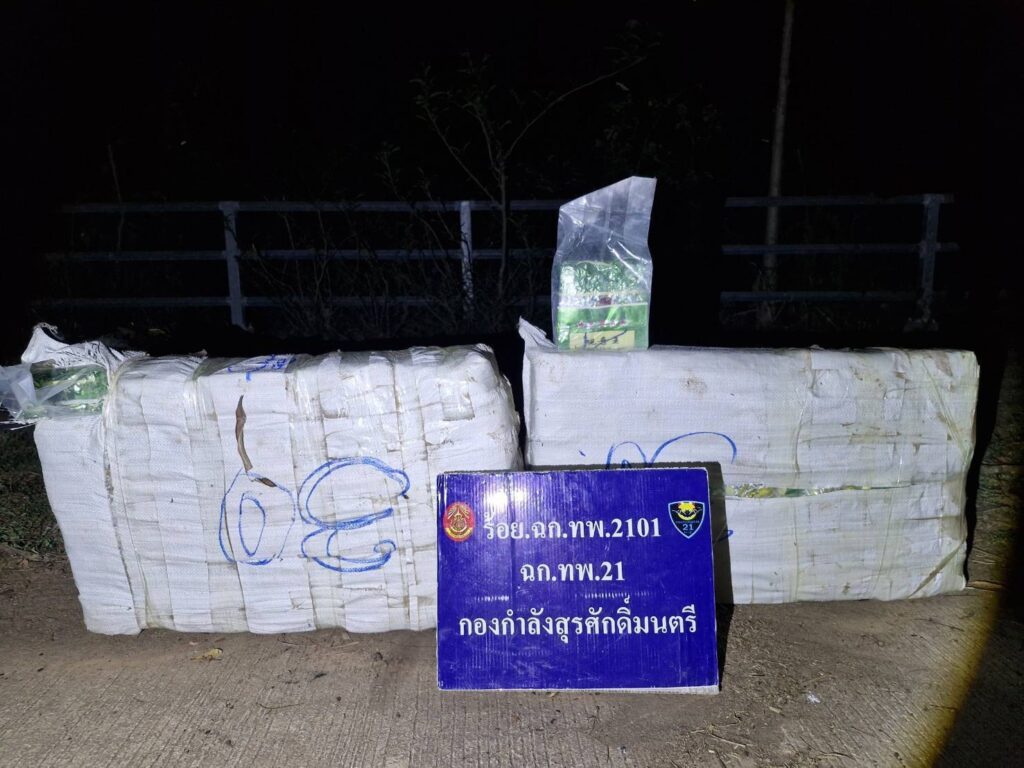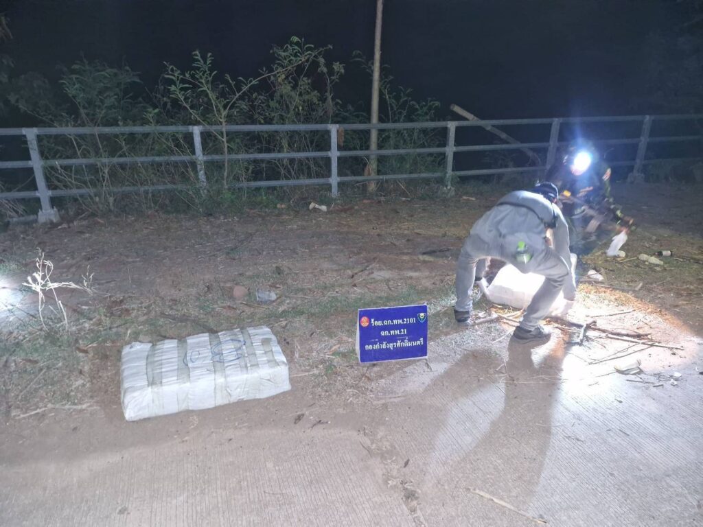 ส่วนที่ริมแม่น้ำโขงทหารพรานเข้าเคลียร์พื้นที่ พบกระสอบป่านสีขาวจำนวน 2 กระสอบ ภายในบรรจุยาไอซ์แพคอยู่ในถุงชาสีทองกระสอบละ 30 ถุงๆละประมาณ 1 กิโลกรัมรวม 60 กิโลกรัม จึงได้ดำเนินการขนย้ายมายัง บก.ร้อย.ฉก.ทพ.2101 บ้านปากห้วยม่วง ต.นาเข เพื่อทำการตรวจนับอย่างละเอียดอีกครั้ง
