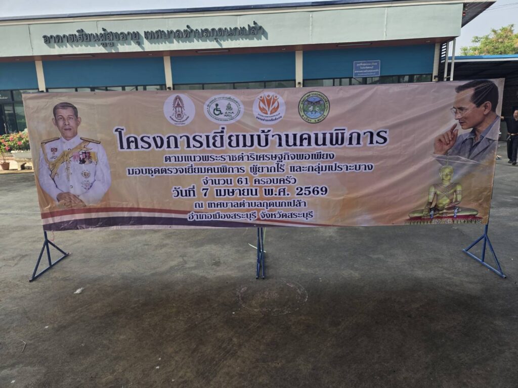 7 เมษายน 2569 : 11.00 น. สภาสังคมสงเคราะห์แห่งประเทศไทย ในพระบรมราชูปถัมภ์ โดย ร.ต.ท.ดร.มนัส โนนุช ประธานสภาสังคมสงเคราะห์ฯ มอบหมายให้ พ.ต.ศิริชัย ทรัพย์ศิริ กรรมการอำนวยการสภาสังคมสงเคราะห์ฯ/นายกสมาคมคนพิการทางการเคลื่อนไหวสากล,นางจิรภา รัตนศิลา ทรัพย์ศิริ ประธานชมรมช่วยเหลือสังคม,นางปุณิกา สุริวงษ์ นายก ทต.กุดนกเปล้า และคณะผู้บริหารฯ,กำนัน,ผู้ใหญ่บ้าน ต.กุดนกเปล้า : ร่วมจัดกิจกรรม “โครงการตรวจเยี่ยมบ้านคนพิการตามแนวพระราชดำริเศรษฐกิจพอเพียง” มอบชุดตรวจเยี่ยมให้คนพิการ ผู้ยากไร้ กลุ่มเปราะบาง จำนวน 61 ครอบครัว ณ อาคารเอนกประสงค์ ทต.กุดนกเปล้า อ.เมือง จ.สระบุรี