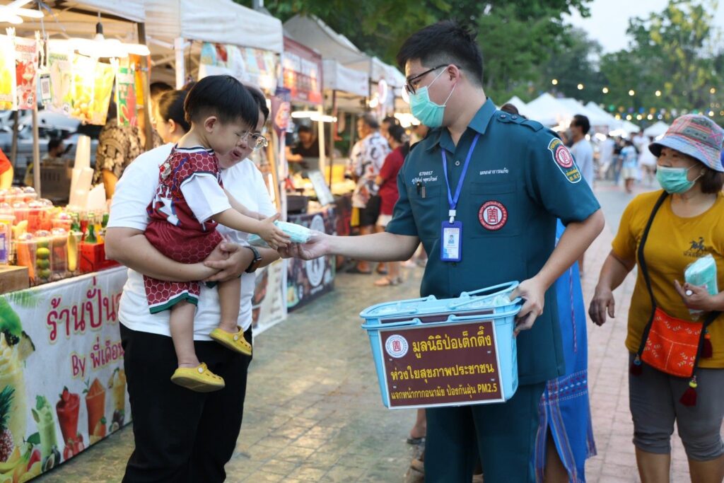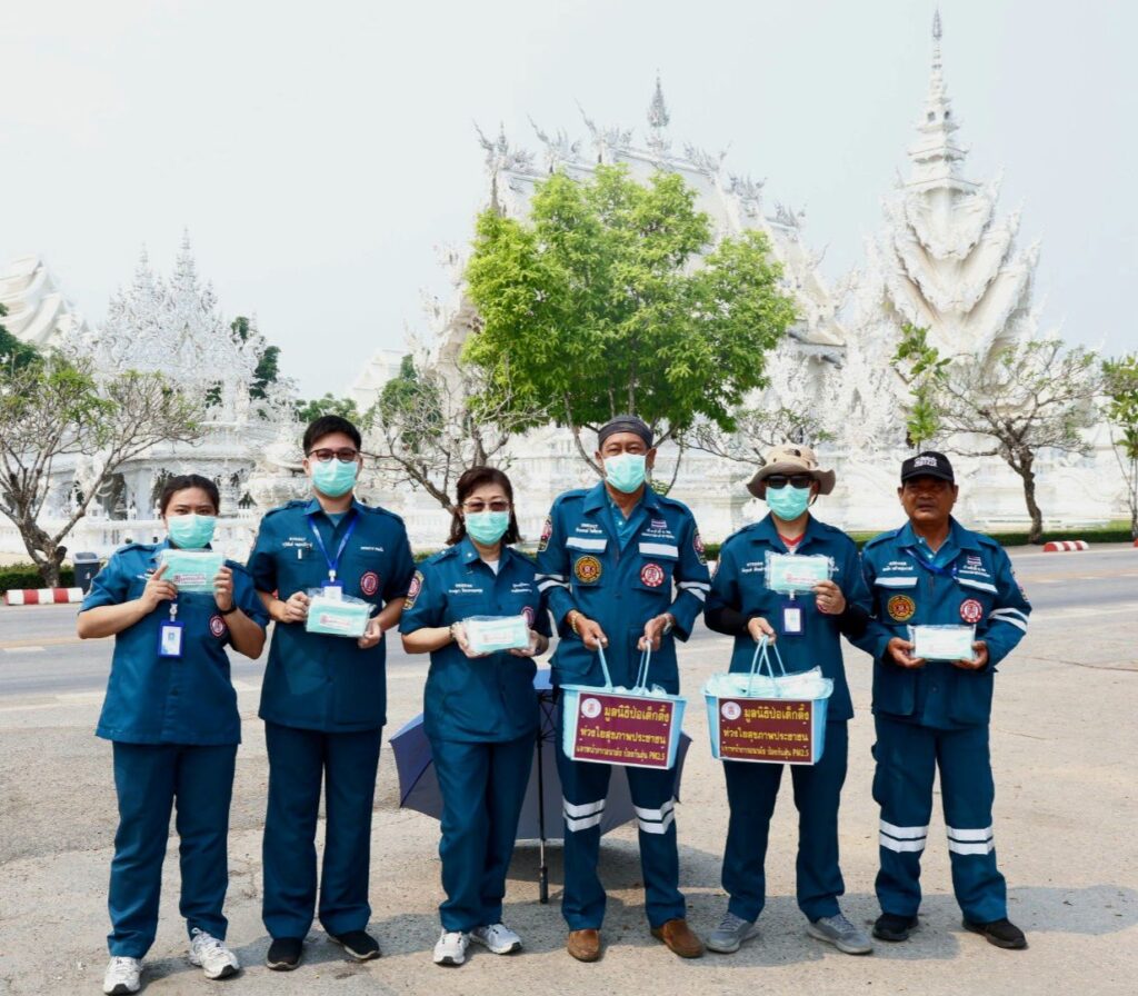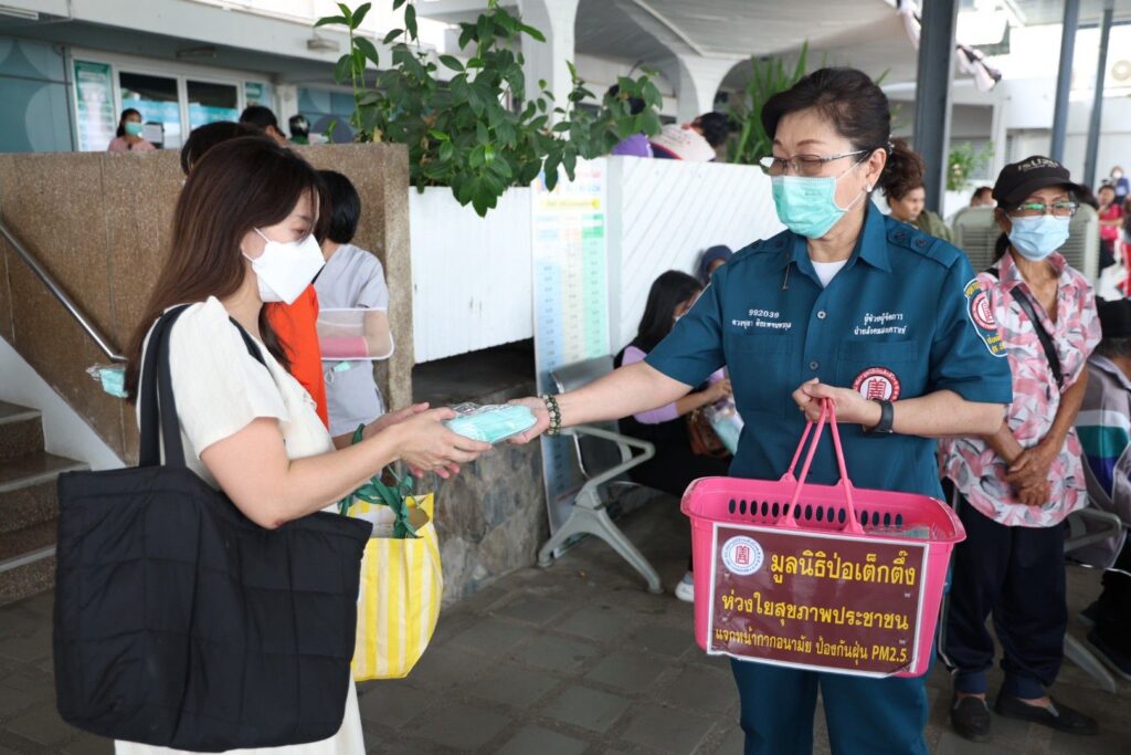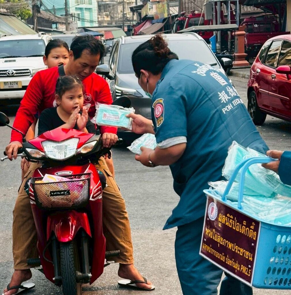 ระหว่างวันที่ 4-7 เมษายน พ.ศ. 2569 มูลนิธิป่อเต็กตึ๊ง นำโดย นางสาวดวงชุตา ติยะพจนพรกุล รักษาการผู้จัดการฝ่ายสาธารณภัย นำเจ้าหน้าที่แผนกสาธารณภัย และแผนกบรรเทาสาธารณภัย ลงพื้นที่ประสบภัยฝุ่นพิษ [PM2.5เกินมาตรฐาน] อาทิ อำเภอเมือง หางดง แม่ริม สันทราย ดอยสะเก็ด และสันกำแพง จังหวัดเชียงใหม่ อำเภอเมือง จังหวัดลำพูน อำเภอเมือง จังหวัดลำปาง และอำเภอเมือง จังหวัดเชียงราย แจกจ่ายหน้ากากอนามัยแก่ประชาชนผู้ได้รับผลกระทบ รวม 440,000 ชิ้น คิดเป็นมูลค่ากว่า 2 แสนบาท โดยมี มูลนิธิเชียงใหม่สามัคคีการกุศล จังหวัดเชียงใหม่ มูลนิธิลำพูนสามัคคีการกุศล จังหวัดลำพูน และมูลนิธิลําปางสงเคราะห์ จังหวัดลำปาง และมูลนิธิสาธารณกุศลสงเคราะห์เชียงราย เป็นผู้ประสานงานและร่วมแจกจ่ายในพื้นที่