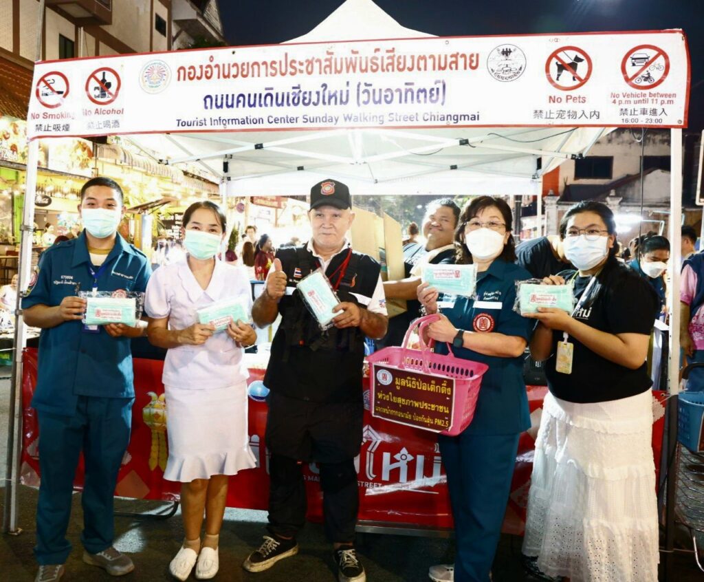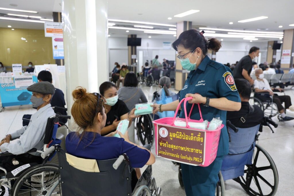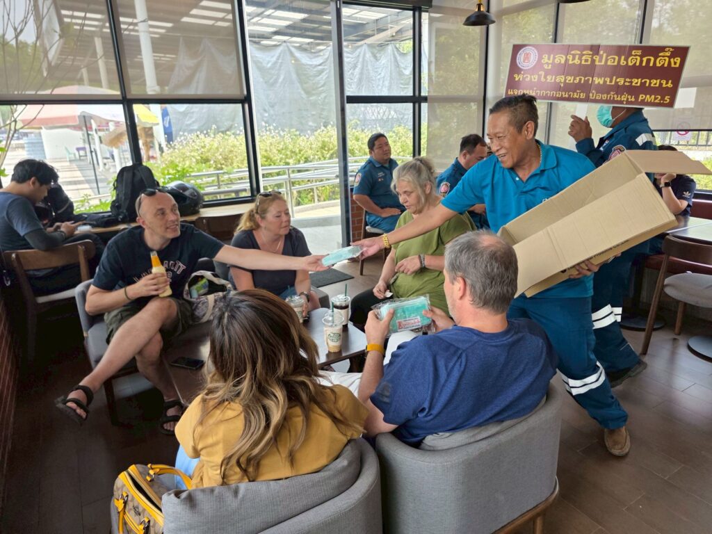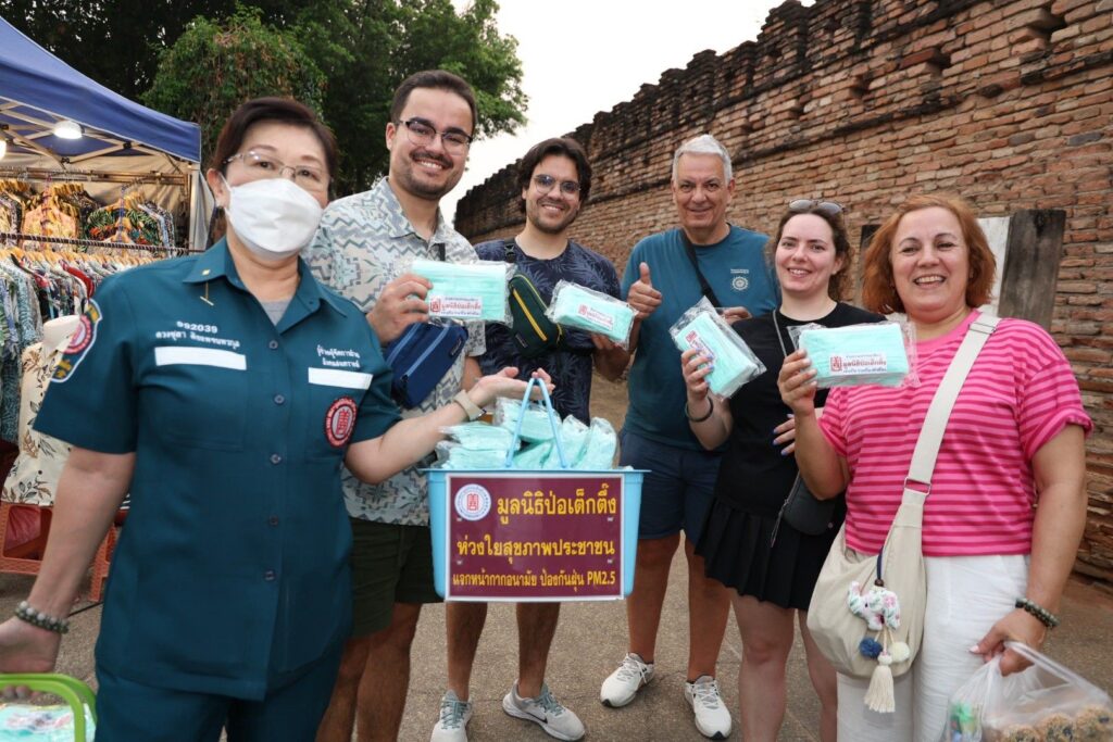 ระหว่างวันที่ 4-7 เมษายน พ.ศ. 2569 มูลนิธิป่อเต็กตึ๊ง นำโดย นางสาวดวงชุตา ติยะพจนพรกุล รักษาการผู้จัดการฝ่ายสาธารณภัย นำเจ้าหน้าที่แผนกสาธารณภัย และแผนกบรรเทาสาธารณภัย ลงพื้นที่ประสบภัยฝุ่นพิษ [PM2.5เกินมาตรฐาน] อาทิ อำเภอเมือง หางดง แม่ริม สันทราย ดอยสะเก็ด และสันกำแพง จังหวัดเชียงใหม่ อำเภอเมือง จังหวัดลำพูน อำเภอเมือง จังหวัดลำปาง และอำเภอเมือง จังหวัดเชียงราย แจกจ่ายหน้ากากอนามัยแก่ประชาชนผู้ได้รับผลกระทบ รวม 440,000 ชิ้น คิดเป็นมูลค่ากว่า 2 แสนบาท โดยมี มูลนิธิเชียงใหม่สามัคคีการกุศล จังหวัดเชียงใหม่ มูลนิธิลำพูนสามัคคีการกุศล จังหวัดลำพูน และมูลนิธิลําปางสงเคราะห์ จังหวัดลำปาง และมูลนิธิสาธารณกุศลสงเคราะห์เชียงราย เป็นผู้ประสานงานและร่วมแจกจ่ายในพื้นที่