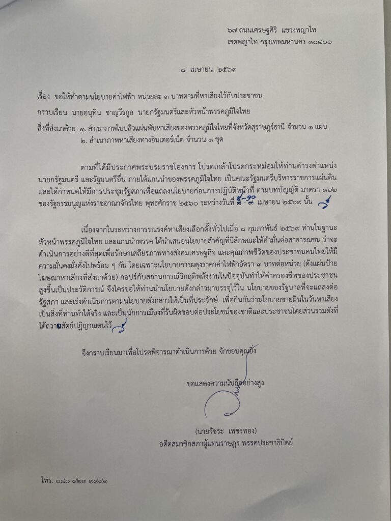 ท่ามกลางบรรยากาศเตรียมแถลงนโยบายต่อรัฐสภาของรัฐบาลชุดใหม่ กลับมีสัญญาณ “ไม่ปกติ” ก่อตัวขึ้นจากถนนเศรษฐศิริ เมื่อปรากฏความเคลื่อนไหวเชิงสัญลักษณ์ที่มีนัยสำคัญทางการเมืองอย่างยิ่ง แหล่งข่าวระดับสูงในวงการนิติบัญญัติเริ่มตั้งข้อสังเกตถึงความ “ว่างเปล่า” ในร่างคำแถลงนโยบายหนา 78 หน้า โดยเฉพาะประเด็น “ค่าไฟฟ้าหน่วยละ 3 บาท” ซึ่งเป็นหัวเจาะสำคัญที่ส่งให้พรรคภูมิใจไทยผงาดขึ้นมาเป็นแกนนำในวันนี้