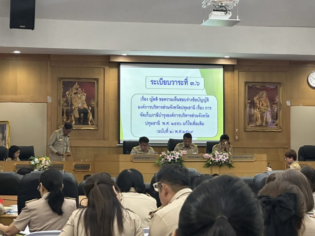 เมื่อเวลา 09.00 น. วันที่ 8 เมษายน 2569 ที่ ห้องประชุมสภาองค์การบริหารส่วนจังหวัดปทุมธานี นายชัยวัฒน์ อินทร์เลิศ ประธานสภา อบจ.ปทุมธานี เปิดประชุมสภาสมัยวิสามัญ สมัยแรก ประจำปี พ.ศ. 2569 เพื่อพิจารณาวาระเร่งด่วนในการบรรเทาความเดือดร้อนของประชาชนเรื่องราคาน้ำมัน โดยมี พล.ต.ท. คำรณวิทย์ ธูปกระจ่าง นายก อบจ.ปทุมธานี พร้อมคณะผู้บริหารและสมาชิกสภา (สจ.) เข้าร่วม โดยมี สจ.เข้าร่วมจำนวน 26 คน ส่งเอกสารขาดลา 11 คน ประกอบด้วย นางภิรมณ์ ตลับทอง ส.อบจ. อำเภอลำลูกกา เขต 2 นายจีระยุทธ กำลังดี ส.อบจ. อำเภอคลองหลวง เขต 1 นายบุญปลูก ใจแคล้ว ส.อบจ. อำเภอคลองหลวง เขต 2 นายศุภชัย เรืองศรี ส.อบจ. อำเภอคลองหลวง เขต 4 นายนพนันท์ หนูเจริญ ส.อบจ. อำเภอคลองหลวง เขต 6นายชนกนันท์ วงษ์แจ้ง ส.อบจ. อำเภอคลองหลวง เขต 8 นางสาวนันธิดา เกียรติพัฒนาชัย ส.อบจ. อำเภอธัญบุรี เขต 3 นายวีระเดช หลีนวรัตน์ ส.อบจ. อำเภอธัญบุรี เขต 4 นางสาวเกวลิน หลีนวรัตน์ ส.อบจ.อำเภอธัญบุรี เขต 5 และ นางสาวศริญกรณ์ พวงเพ็ชร์ ส.อบจ. อำเภอสามโคก เขต 2 ยื่นหนังสือลา ส่วนผู้ที่ขาดประชุม 1 คน คือ นายโนรี นิยมแก้ว ส.อบจ. อำเภอสามโคก
