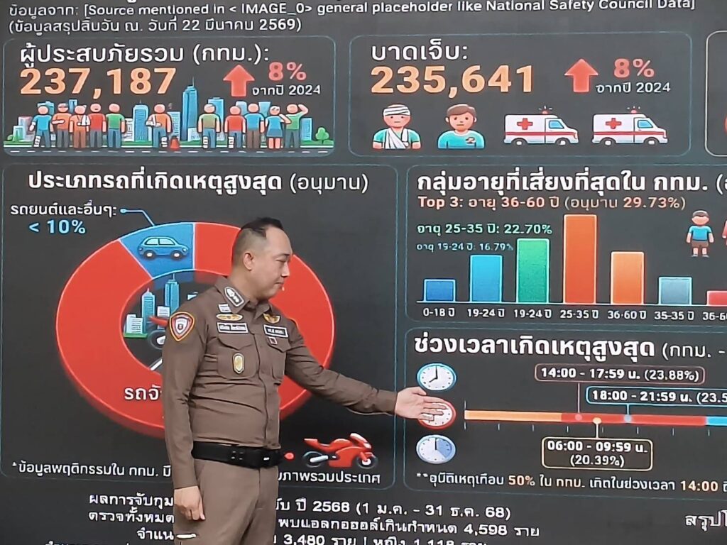 ตามนโยบายของรัฐบาลที่มุ่งเน้นการเสริมสร้างวัฒนธรรมความปลอดภัยทางถนนอย่างยั่งยืน สำนักงานตำรวจแห่งชาติ ภายใต้การกำกับดูแลของ พล.ต.อ.กิตติ์รัฐ พันธุ์เพ็ชร์ ผู้บัญชาการตำรวจแห่งชาติ และ พล.ต.อ.สำราญ นวลมา รองผู้บัญชาการตำรวจแห่งชาติ ในฐานะผู้อำนวยการศูนย์บริหารงานจราจร ให้ความสำคัญกับการป้องกันและลดอุบัติเหตุทางถนนในช่วงเทศกาลสงกรานต์ พ.ศ.2569