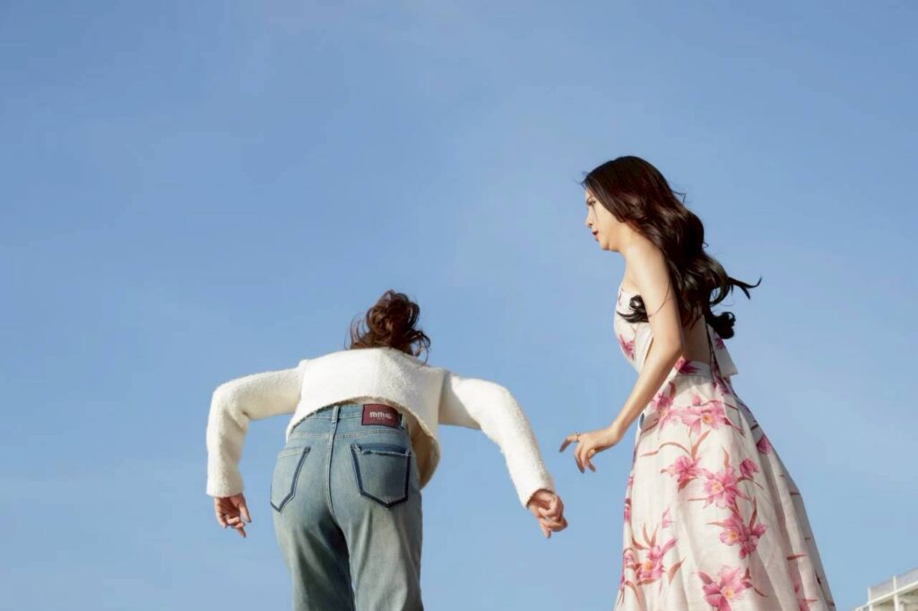 ฉากนี้สองสาวต้องประคองตัวไม่ให้ล้ม เพราะโขดหินไม่เสมอกัน แต่ทั้งคู่ก็ทำการแสดงฉากนี้ไปด้วยดี