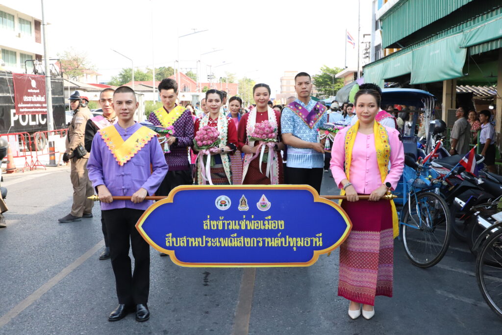 เมื่อวันที่ 10 เมษายน 2569 บรรยากาศที่จวนผู้ว่าราชการจังหวัดปทุมธานี อบอวลไปด้วยกลิ่นหอมของน้ำอบน้ำปรุงและรอยยิ้มแห่งความศรัทธา เมื่อ สำนักงานวัฒนธรรมจังหวัดปทุมธานี จับมือ สภาวัฒนธรรมจังหวัด และ เครือข่ายชาวมอญ ร่วมกันจัดงานสืบสานประเพณี “ส่งข้าวแช่พ่อเมือง” ประจำปี 2569 อย่างสมเกียรติและร่วมสมัยโดยขบวนแห่สำรับข้าวแช่สุดอลังการได้เคลื่อนเข้าสู่จวนผู้ว่าฯ นำโดย ขบวนแตรวงและนางรำผู้อ่อนช้อยจาก โรงเรียนบัวแก้วเกษร อำเภอลาดหลุมแก้ว ขบวนหางหงส์ธงตะขาบ ขันดอกไม้ และน้ำอบน้ำปรุงที่ปรุงอย่างประณีต พร้อมสำรับข้าวแช่รามัญที่จัดตกแต่งอย่างสวยงาม เพื่อนำมามอบให้แก่ผู้ใหญ่ที่เคารพนับถือ ในพิธีอันศักดิ์สิทธิ์นี้ นายเอกวิทย์ มีเพียร ผู้ว่าราชการจังหวัดปทุมธานี และ นางชฎานุช มีเพียร นายกเหล่ากาชาดจังหวัดปทุมธานี ให้เกียรติเป็นผู้รับมอบสำรับข้าวแช่ โดยมีบุคคลสำคัญเข้าร่วมงานอย่างคับคั่ง อาทิ นางรัสรินทร์ อริยพัชญ์พล ผู้พิพากษาหัวหน้าศาลจังหวัดชัยนาท ช่วยทำงานชั่วคราวในตำแหน่งผู้พิพากษาหัวหน้าศาลจังหวัดปทุมธานี นายพงศธร กาญจนะจิตรา รองผู้ว่าราชการจังหวัดปทุมธานี นายดงพล รุจิธรรมธัช รองผู้ว่าราชการจังหวัดปทุมธานี พล.ต.ท.คำรณวิทย์ ธูปกระจ่าง นายกองค์การบริหารส่วนจังหวัดปทุมธานี นางลัษมา ธารีเกษ วัฒนธรรมจังหวัดปทุมธานี พร้อมด้วยข้าราชการ ทหาร ตำรวจ พ่อค้า และประชาชนชาวปทุมธานีที่แต่งกายด้วยชุดพื้นเมือง สร้างภาพลักษณ์ที่ดูร่วมสมัยแต่ยังคงกลิ่นอายดั้งเดิมได้อย่างลงตัว