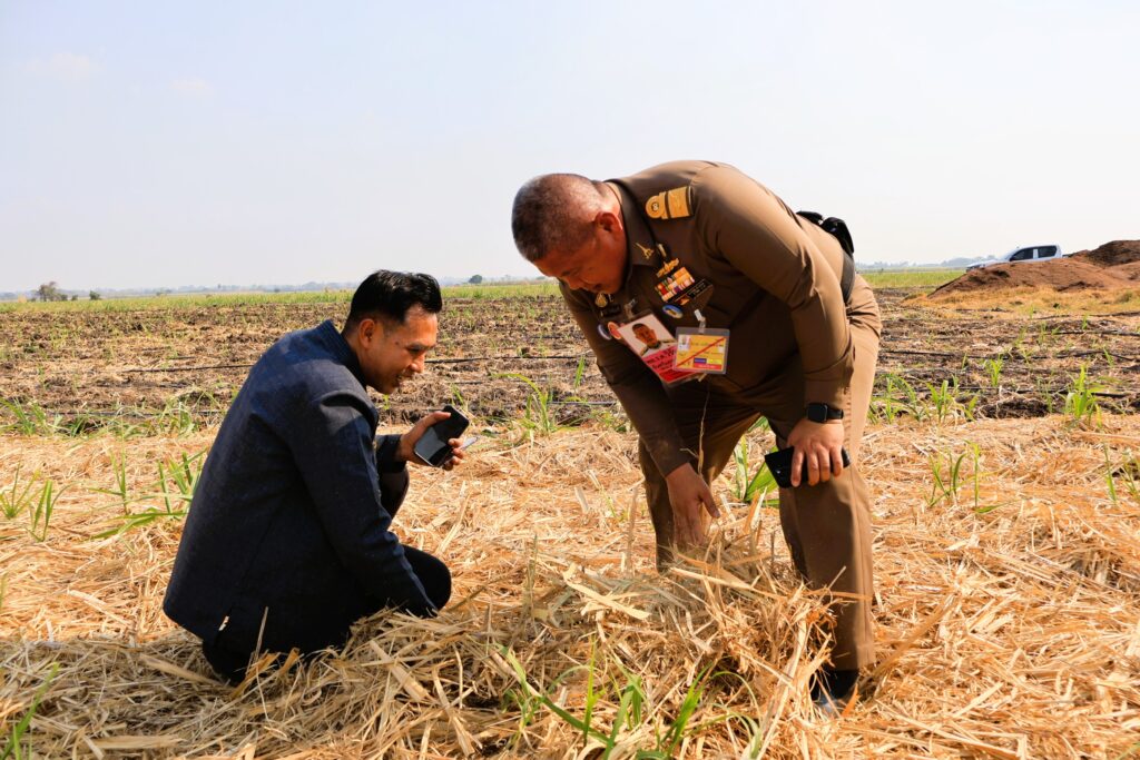 โดยคณะได้ลงพื้นที่ ตำบลชอนสมบูรณ์ อำเภอหนองม่วง จังหวัดลพบุรี โดยพล.ร.ต.วิรัตน์ จันทร์แสงศรี ร.น. ให้คำแนะนำ เรื่อง การบริหารจัดการเศษวัสดุเหลือใช้ทางการเกษตร (ใบอ้อย) ต้องเกิดจากการวางแผนหารือร่วมกัน พร้อมกับความต้องการของเกษตรกรและชาวบ้านในพื้นที่ นำใบอ้อยมาสร้างมูลค่าทำปุ๋ย แล้วนำกลับไปใช้ในแปลง จัดทำในรูปแบบของธนาคารเพื่อการแลกเปลี่ยน วัสดุเหลือใช้ทางการเกษตร โดยมีชุมชนเป็นหลักในการบริหารจัดการ ศอญ.จอส พระราชทาน เป็นหน่วยงานประสานงาน มีการวางแผน พัฒนาเครื่องมือ/เครื่องจักรให้เหมาะสมกับสภาพพื้นที่ โดยมีหน่วยงานภาครัฐ ภาคเอกชน ระดับพื้นที่ให้การสนับสนุน ใช้การทำงานแบบจิตอาสา ได้ประโยชน์ร่วมกัน เพื่อลดปัญหา pm 2.5 และลดต้นทุนทางการเกษตร
