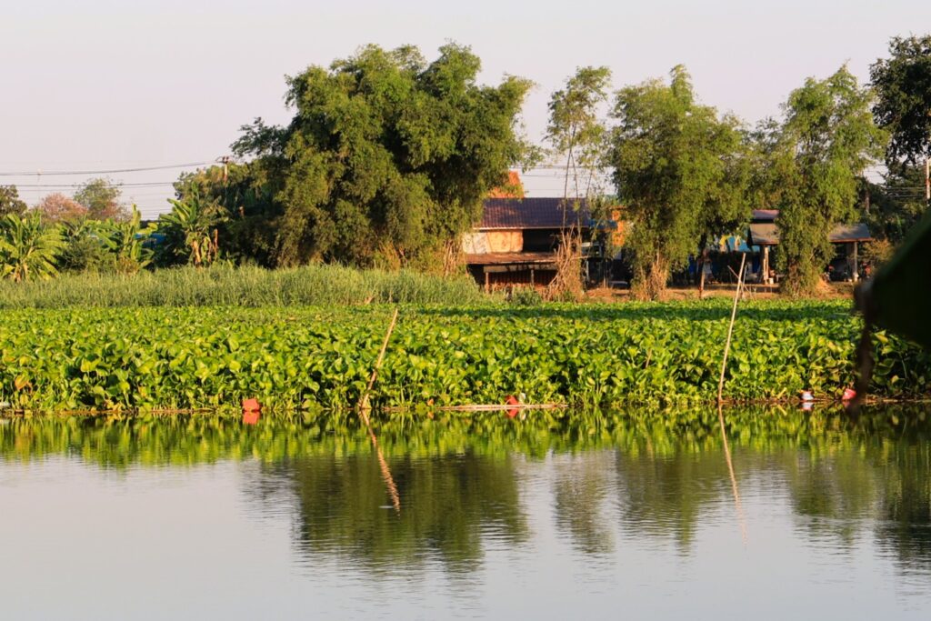 จากนั้นคณะได้เดินทางต่อไปยัง ตำบลมหาสอน และ ตำบลบางขาม อำเภอบ้านหมี่ จังหวัดลพบุรี เพื่อดูการบริหารจัดการจัดการวัชพืช (ผักตบชวา) โดย พล.ร.ต.วิรัตน์ จันทร์แสงศรี ร.น. ให้คำแนะนำว่า การนำผักตบชวาขึ้นมาจากแหล่งน้ำ ควรมีการ สับหยาบตั้งแต่กระบวนการบนเรือจัดเก็บ เพื่อเร่งกระบวนการย่อยให้เร็วขึ้น และจุดรวบรวมผักตบชวาควรอยู่ห่างกันในรัศมี 1-2 กิโลเมตร เพื่อลดกระบวนการขนส่ง ส่วนการแปรรูปผักตบชวา ขึ้นอยู่กับความต้องการของเกษตรกรและคนในชุมชนว่ามีความต้องการนำผักตบชวาไปใช้แปรรูปเป็นผลิตภัณฑ์อะไร อาทิเช่น ปุ๋ยหมักผักตบชวา วัสดุรองกันกระแทก บะหมี่หยกจากผักตบชวา และอาหารเป็ดไล่ทุ่ง โดยให้คนในชุมชนและเกษตรกรสนใจ โดยใช้กิจกรรมจิตอาสาเข้ามาเป็นส่วนร่วมในการแปรรูป และสามารถนำผลิตภัณฑ์นั้น ๆ ไปใช้ประโยชน์ในพื้นที่ของตนเองต่อไป