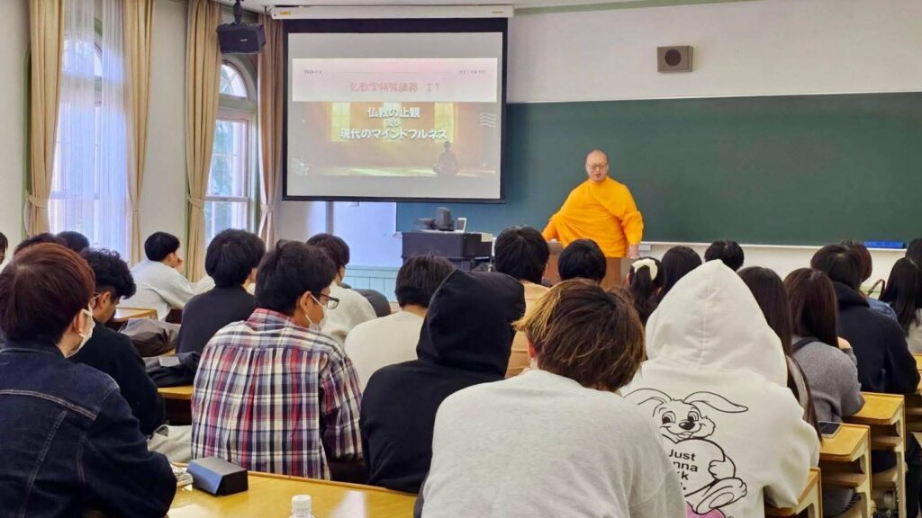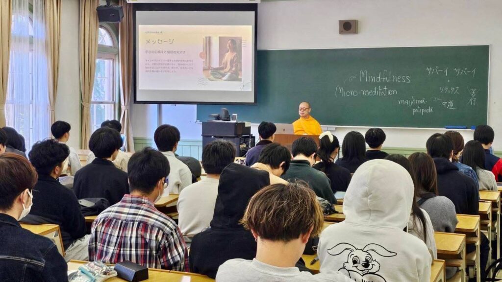 วันที่ 9 เมษายน 2569 พระครูสมุห์สนิทวงศ์ วุฑฺฒิวํโส, ดร. ผู้อำนวยการสำนักสื่อสารองค์กร วัดพระธรรมกาย จังหวัดปทุมธานี เปิดเผยว่า มหาวิทยาลัยริวโคขุ (Ryukoku University) สถาบันอุดมศึกษาชั้นนำของญี่ปุ่น ได้นิมนต์พระธรรมทูตไทย 2 รูป เข้าดำรงตำแหน่งอาจารย์ผู้สอนในรายวิชา “Samatha-Vipassana in Buddhism and Modern Mindfulness” ในภาคเรียนที่ 1 โดยมีนักศึกษาลงทะเบียนเรียนกว่า 70 คน นับเป็นความร่วมมือด้านวิชาการที่สะท้อนความสนใจต่อการศึกษาพุทธศาสนาในบริบทสมัยใหม่