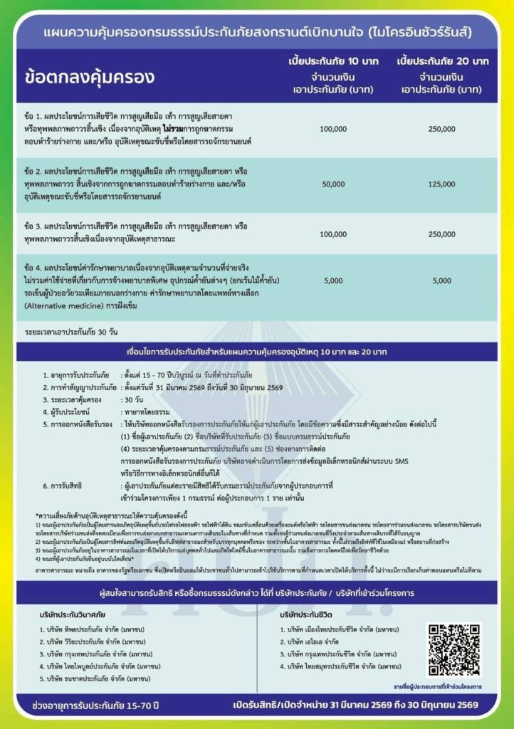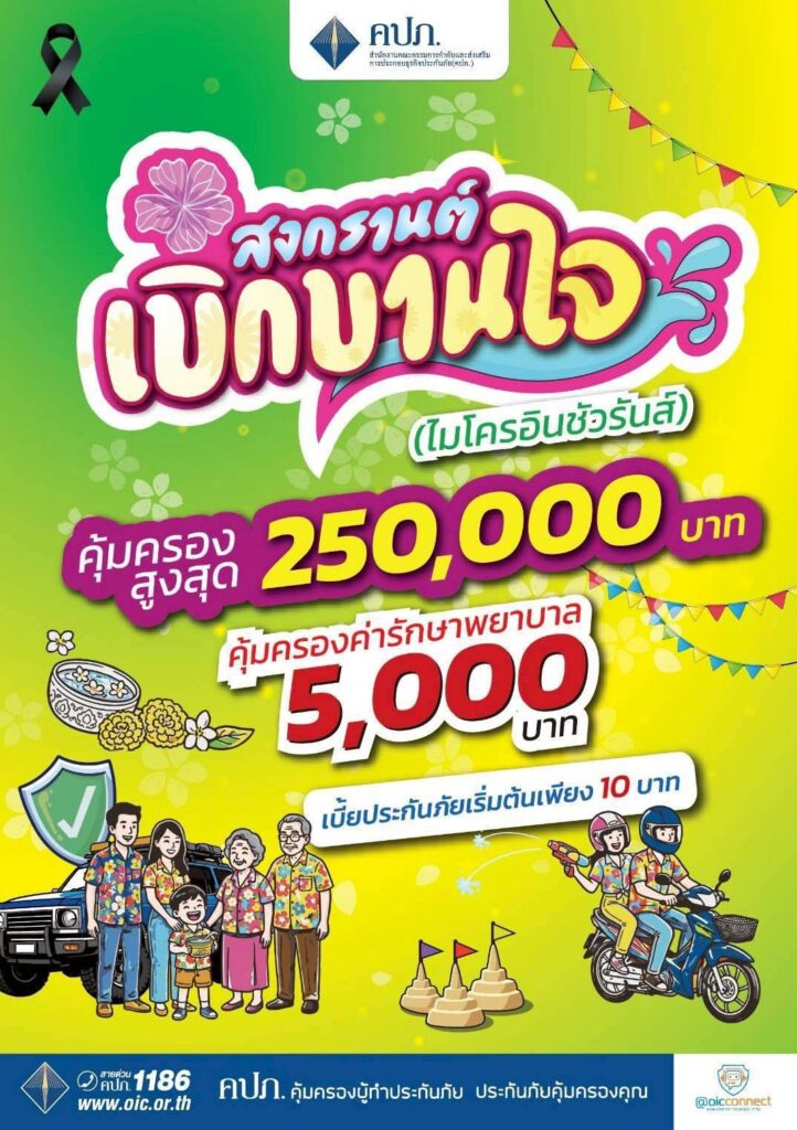 นอกจากนี้ผู้ว่ารากชารจังหวัดลพบุรี ฝากเชิญชวนพี่น้องประชาชนร่วมสมัคร ประกันภัย“สงกรานต์เบิกบานใจ & ฝากบ้านเที่ยวอุ่นใจ” ซึ่งจ่ายเบี้ยประกันหลัก 10 บาท แต่คุ้มครองวงเงินสูงถึง 250,000 บาท เพื่อให้พี่น้องประชาชนมีความอุ่นใจมีหลักประกันกับตัวเองและครอบครัวในการเดินทางมากยิ่งขึ้น สนใจสามารถโทรสอบถามได้ที่ สายด่วน คปภ.1186
