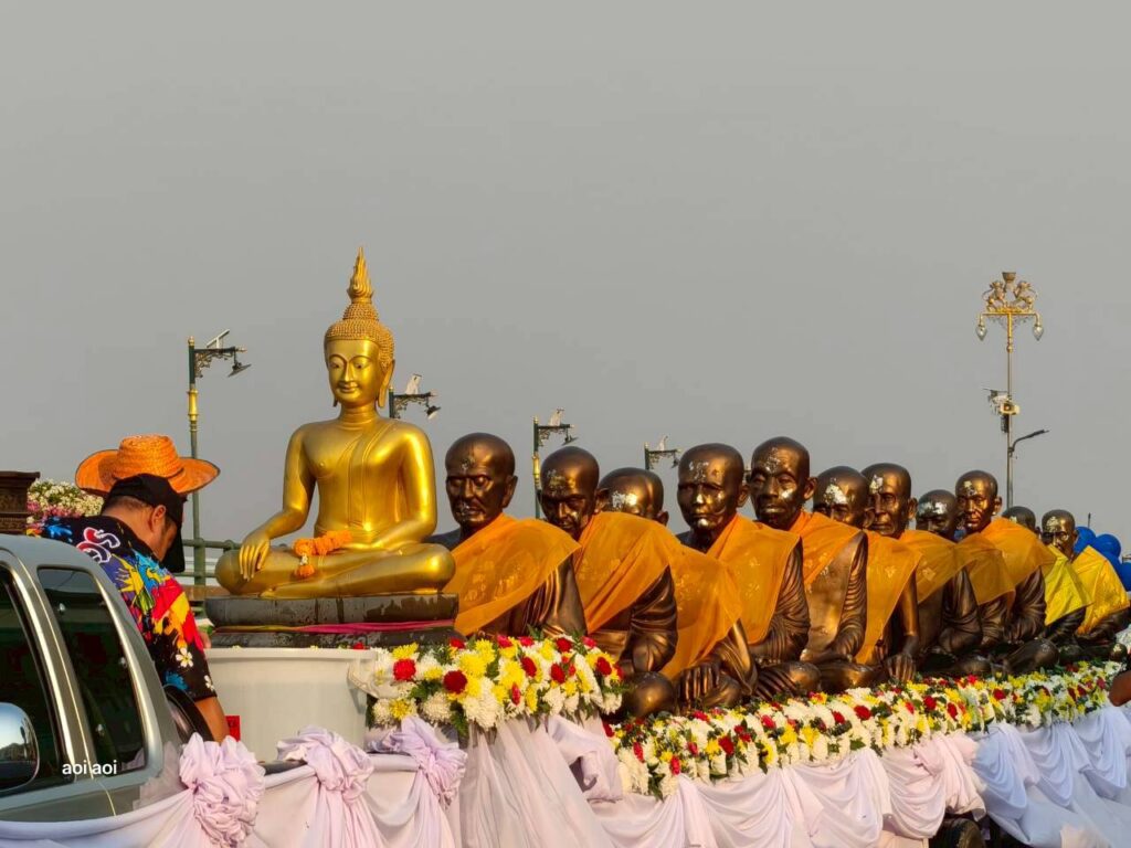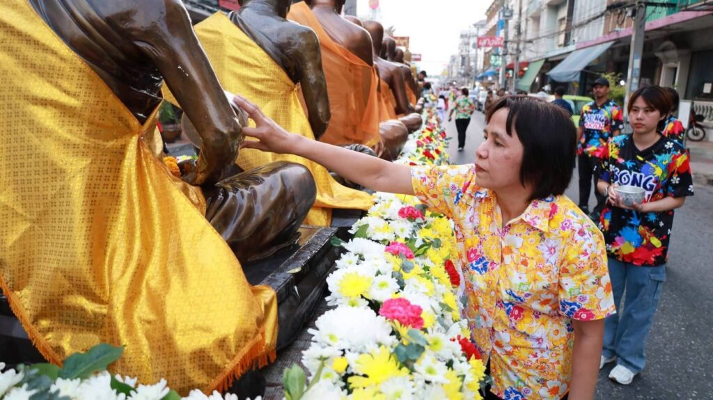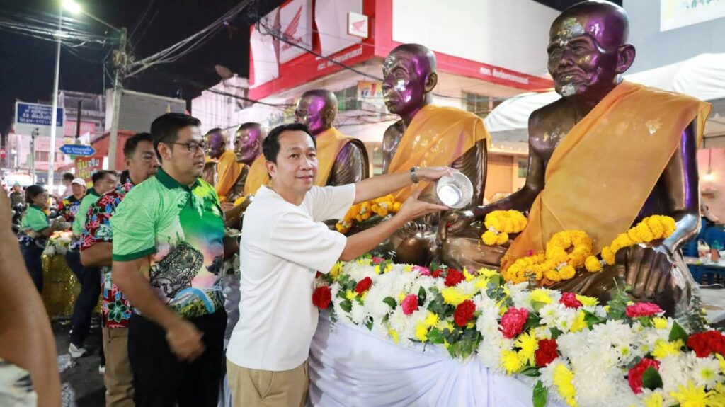 ทั้งนี้ ได้มีการจัดขบวนอัญเชิญพระพุทธรูปเกจิ เริ่มตั้งแต่บริเวณหน้าสำนักงานเทศบาลเมืองสิงห์บุรี เคลื่อนขบวนไปตามถนนขุนสรรค์ ก่อนนำไปประดิษฐาน ณ บริเวณตลาดโต้รุ่งสิงห์บุรี เพื่อให้ประชาชนได้ร่วมสรงน้ำเพื่อความเป็นสิริมงคล ตั้งแต่วันที่ 11–15 เมษายน 2569