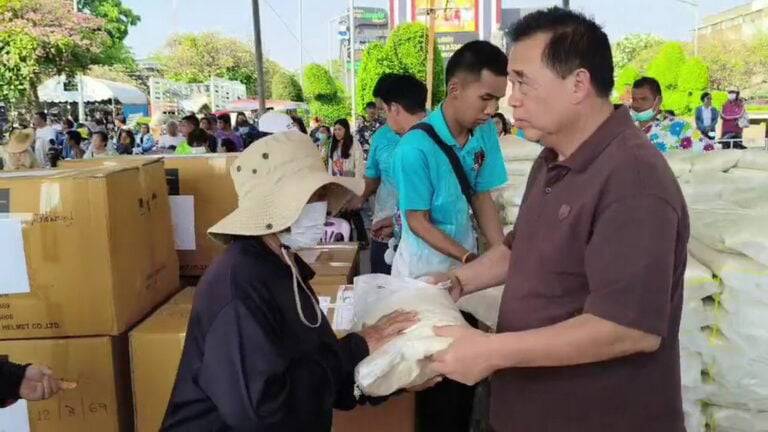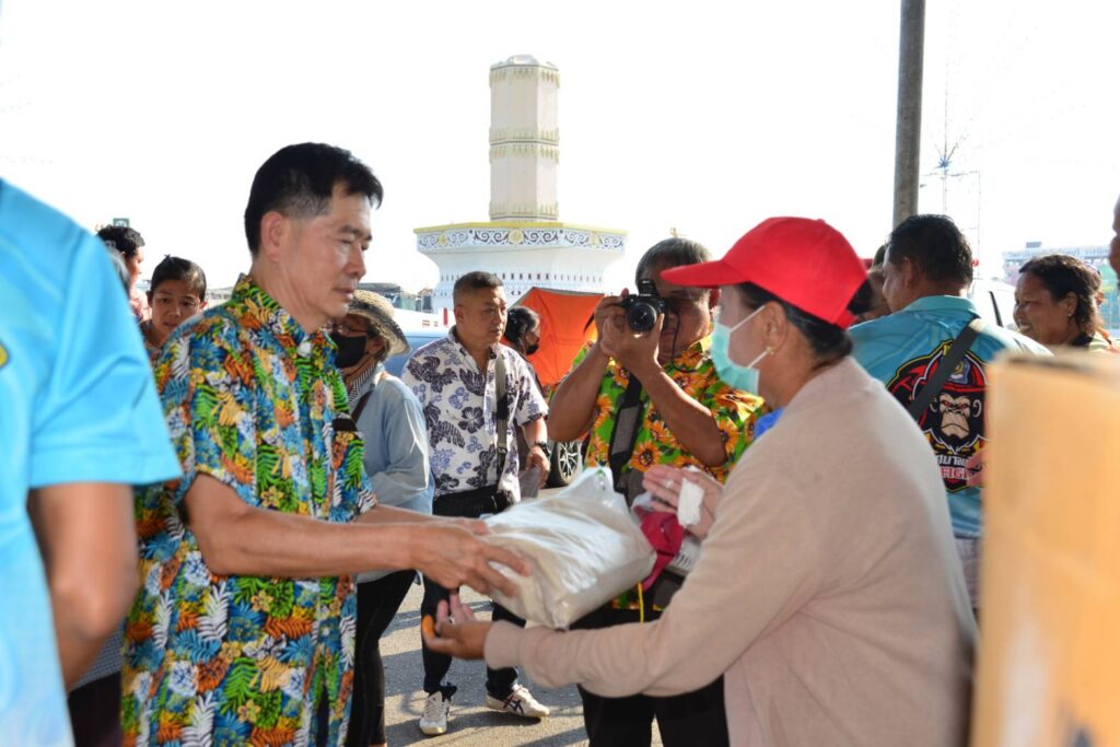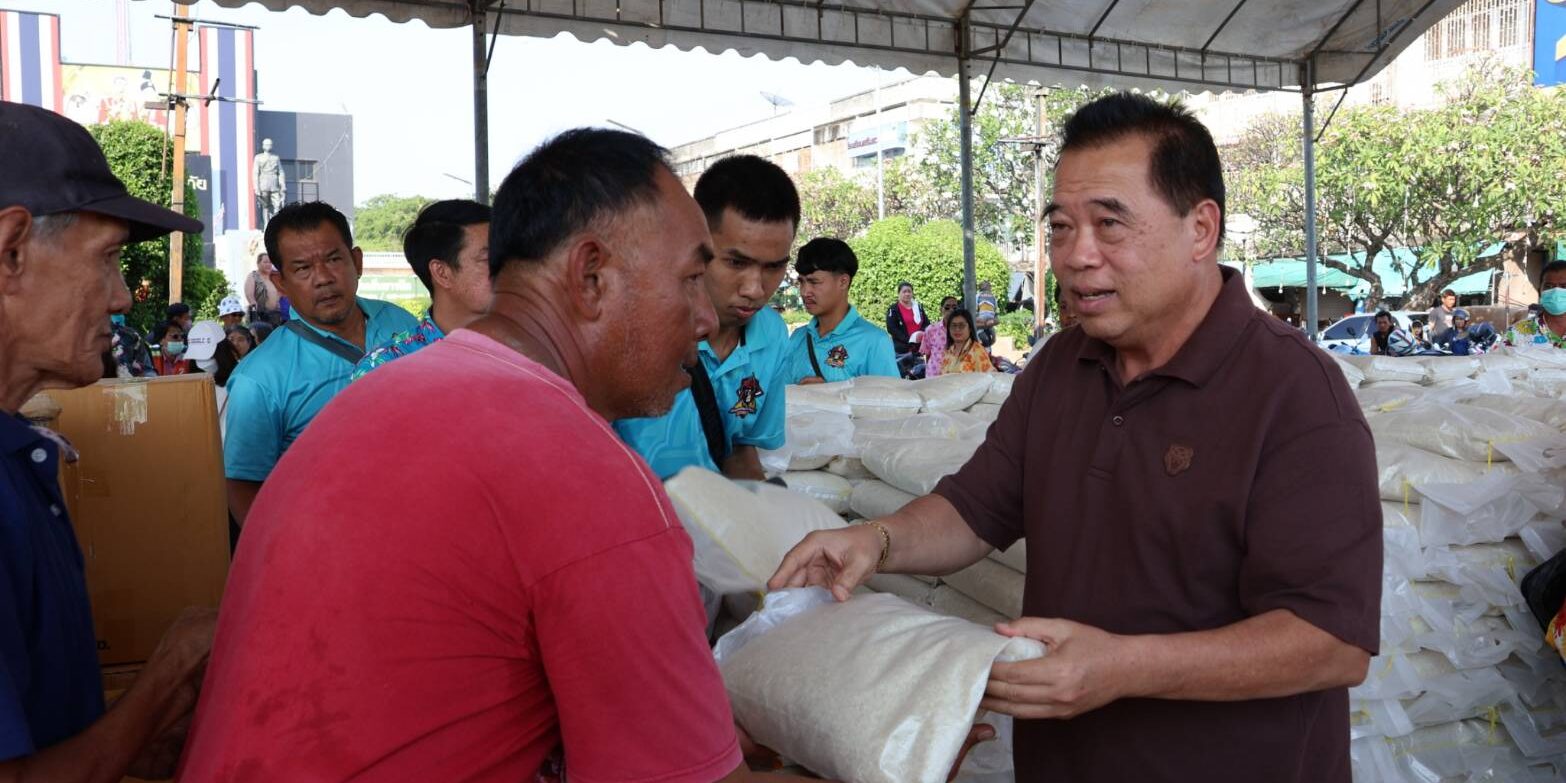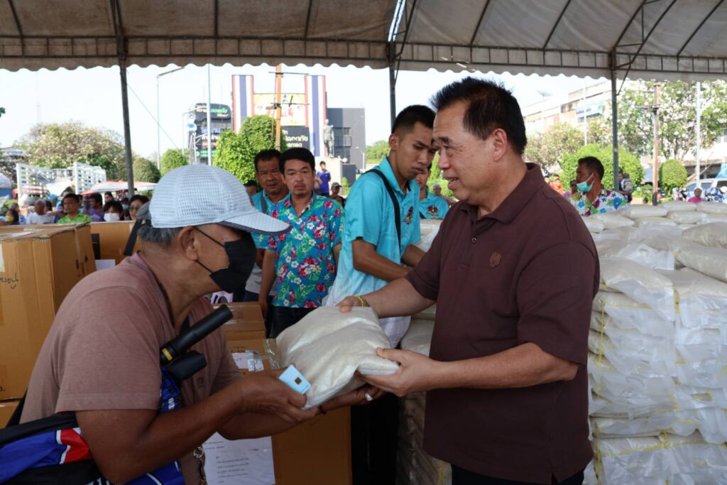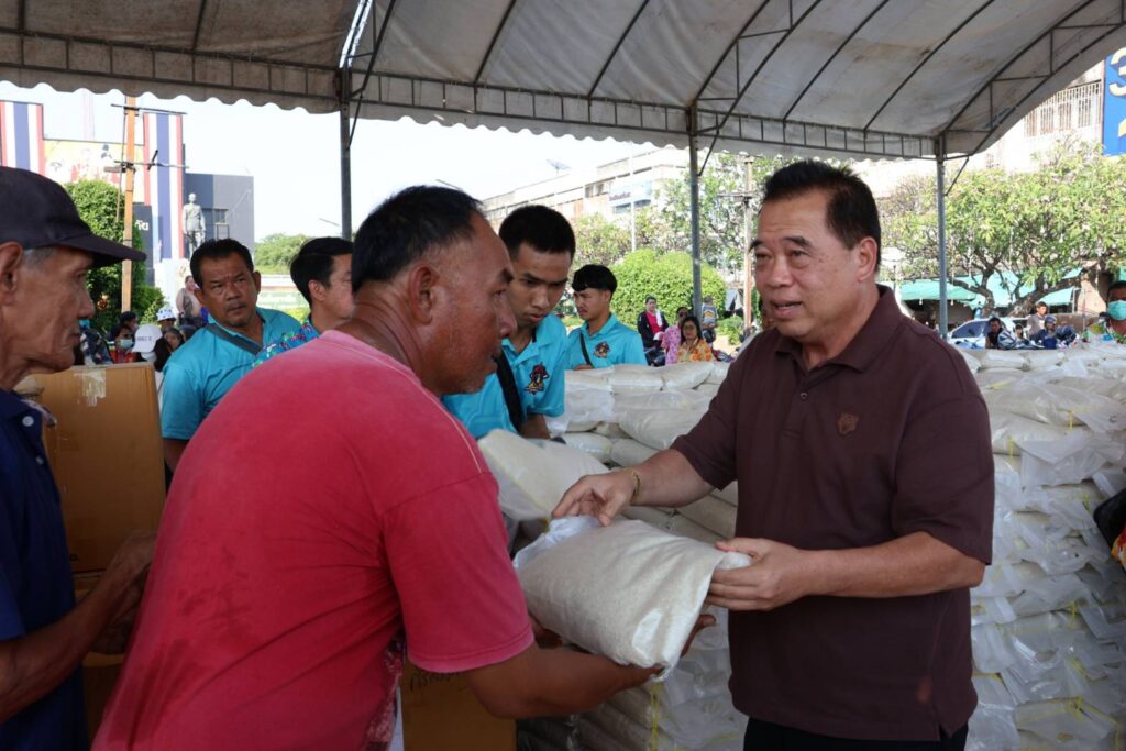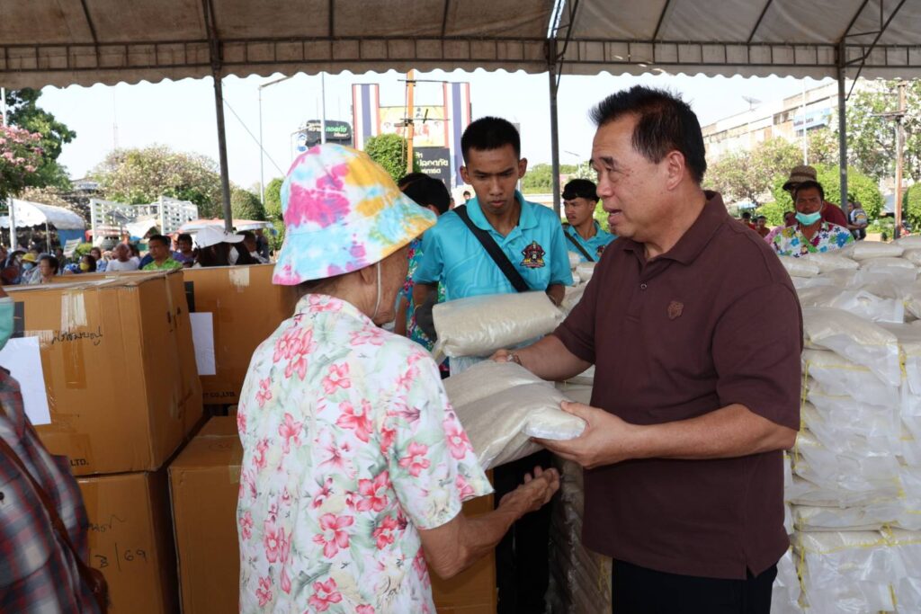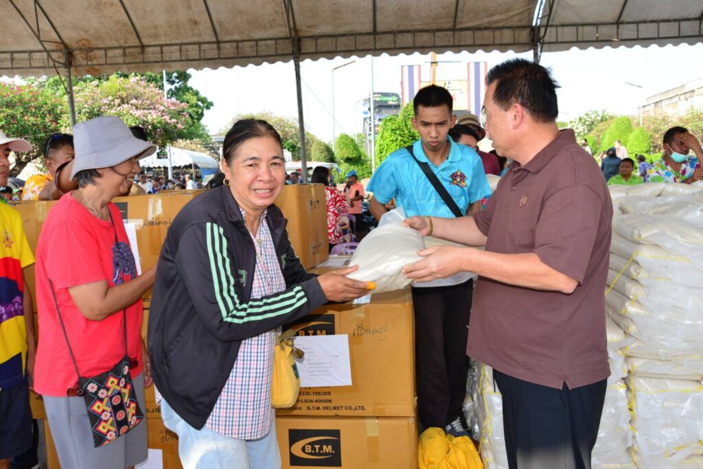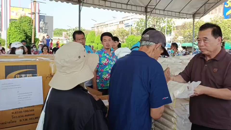สำหรับข้าวสารที่จัดเตรียมมากในครั้งนี้เป็นข้าวหอมมะลิชั้นดีจำนวน 4-5 พันถุง และหมวกกันน็อคอีกจำนวน 300 พันใบ นอกจากนี้ยังมีภาคเอกชนที่เป็นแม่ค้าในตลาดสดเทศบาลเมืองลพบุรีทราบข่าวนำหัวหอม คะน้า บร็อคโคลี่ บรรจุใส่ถุงมาแจกให้ประชาชนที่เดินทางมาอีก 1 คันรถกระบะ