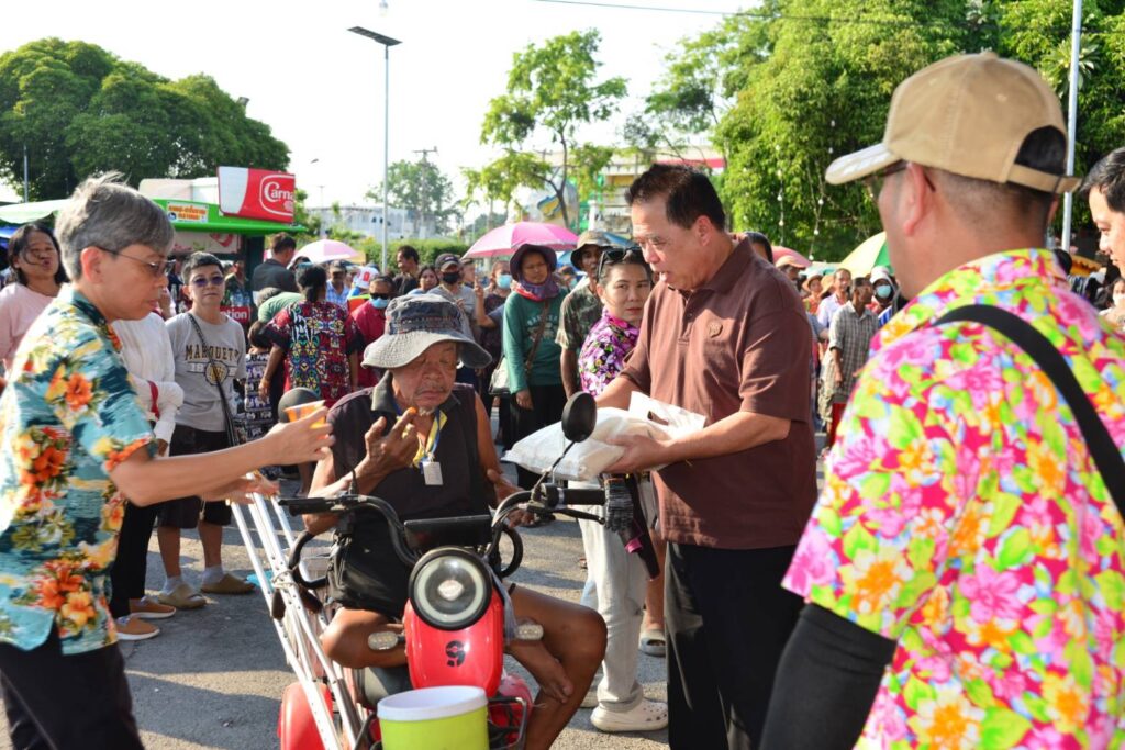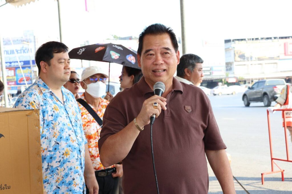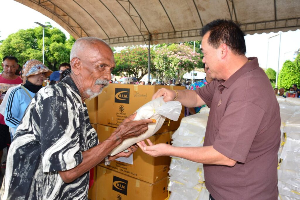 การมอบข้าวและหมวกกันน็อคในครั้งนี้ว่า เนื่องจากในช่วงนี้ประชาชนได้รับผลกระทบจากเศรษฐกิจที่ชะลอตัวข้าวของต่าง ๆ มีราคาแพง ซึ่งส่งผลกระทบกับค่าครองชีพกับประชาชนทั่วไปในการดำรงชีวิตและส่งผลกระทบหนักกับประชาชนที่มีรายได้น้อยโดยตรง โดยตนเองนั้นเห็นใจประชาชนเป็นอย่างมากและตนเองก็พอมีรายได้ที่จะสามารถจุลเจือให้กับประชาชน เพื่อเป็นการช่วยเหลือบรรเทาความเดือดร้อนได้ส่วนหนึ่งทำให้ต้องใช้ทุนส่วนตัวประมาณ 5 แสนบาทในการจัดซื้อข้าวสารมามอบให้กับประชาชน ขณะเดียวกันในช่วงนี้เป็นช่วงเทศกาลสงกรานต์เห็นว่าจะเกิดอุบัติเหตุจากการใช้รถจักรยานยนต์บ่อย รวมทั้งเกิดการสูญเสียชีวิตและทำให้พิการประกอบกับมีการเข้มงวดในการใช้กฎหมายจราจรที่ประชาชนไม่สวมหมวกกันน็อคจะต้องถูกปรับ จึงได้จัดหาหมวกกันน็อคมามอบให้กับประชาชนในครั้งนี้ด้วยและขอให้ผู้ที่ได้รับไปสวมให้ให้ถูกกฎหมายจราจรด้วย