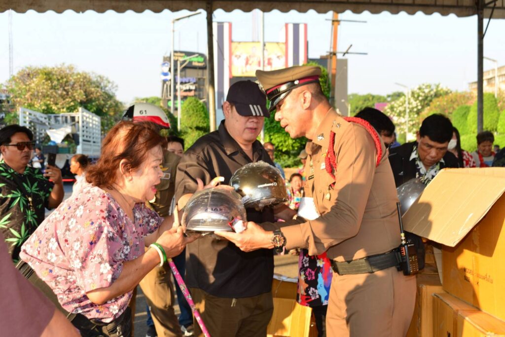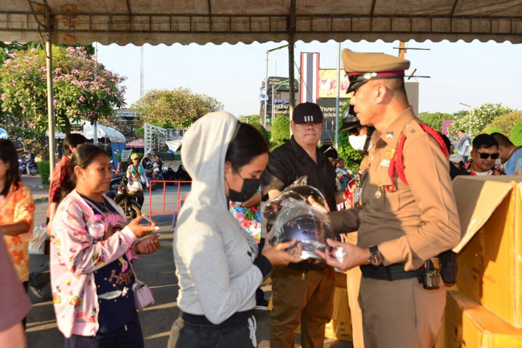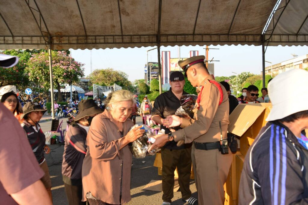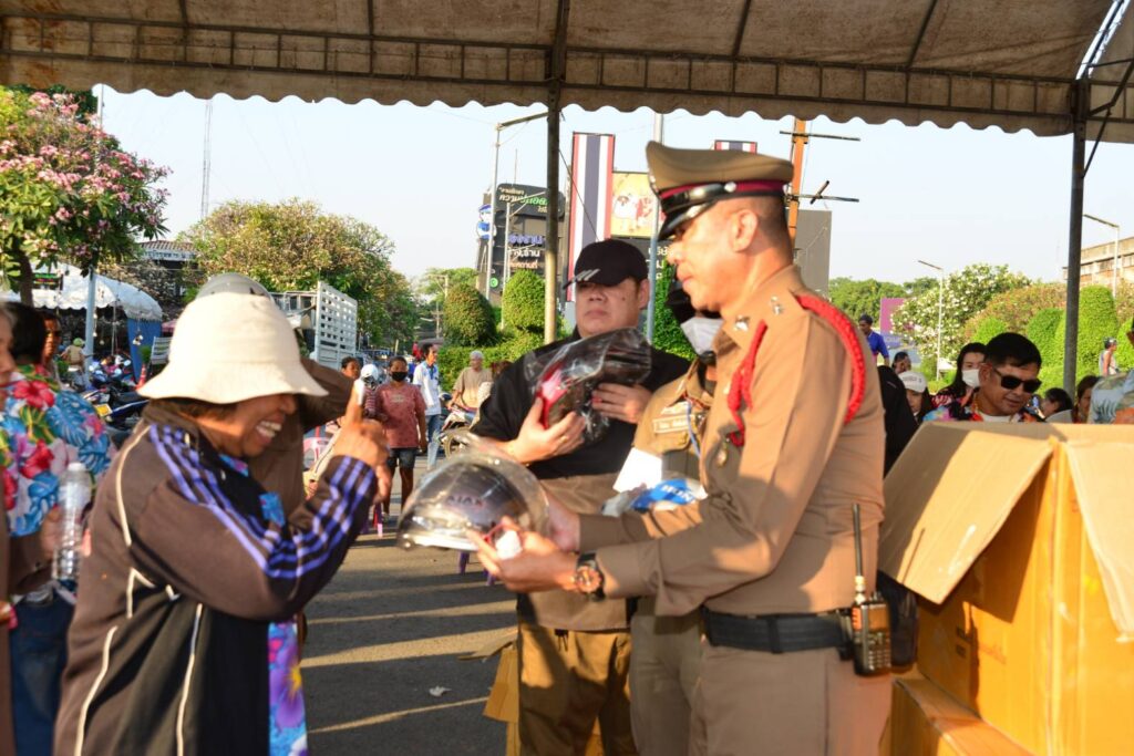 โดยมีข้อตกลงเพื่อที่จะได้ให้ประชาชนได้รับข้าวสารอย่างทั่วถึงผู้ที่มารับข้าวสารจะต้องนำนิ้วไปจุ่มในสีน้ำมันที่ทางเจ้าหน้าที่จัดเตรียมไว้เป็นสีส้ม ทั้งนี้ถ้าครอบครัวใดมากันหมดบ้านก็สามารถรับได้เพียงคนละ 1 ถุงเท่านั้น ในการมอบครั้งนี้พบว่ามีประชาชนที่ร่างกายพิการมารอรับข้าวสารและเดินทางมาจากจังหวัดใกล้เคียงด้วย ขณะเดียวกันประชาชนที่เดินทางมามารอรับหมวกกันน็อคจะต้องเตรียมใบขับขี่รถจักรยานยนต์มาแสดง พร้อมกับต้องใช้นิ้วจุ่มสีน้ำมันเป็นขาวก่อนที่จะรับหมวกกันน็อคป้องกันการหมุนเวียนแจกจ่ายให้ทั่วถึง