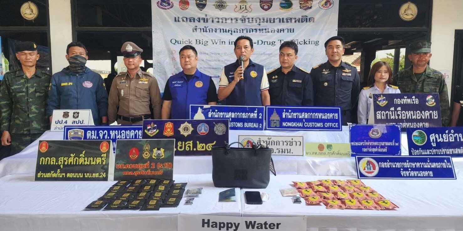 สำนักงานศุลกากรหนองคาย ฉบับที่ 6/2569 จับกุมหญิงชาวลาวซุกซ่อนยาเสพติดให้โทษประเภท 1 (Happy Water)น้ำหนักรวม 3,000 กรัม รวมมูลค่ากว่า 80,000 บาทนายอนุทิน ชาญวีรกูล นายกรัฐมนตรีและรัฐมนตรีว่าการกระทรวงมหาดไทย ได้กำหนดนโยบายเร่งรัดการแก้ไขปัญหายาเสพติดอย่างจริงจัง โดยเน้นการบูรณาการความร่วมมือของทุกหน่วยงานที่เกี่ยวข้อง เพื่อสกัดกั้น และปราบปรามเครือข่ายค้ายาเสพติดอย่างเป็นระบบครอบคลุมตั้งแต่ต้นทาง ระหว่างทาง และปลายทาง ขณะที่ ดร.เอกนิติ นิติทัณฑ์ประภาศ รองนายกรัฐมนตรีและรัฐมนตรีว่าการกระทรวงการคลัง ได้มอบนโยบายให้กรมศุลกากรบูรณาการความร่วมมือกับหน่วยงานบังคับใช้กฎหมายเพิ่มความเข้มงวดในการควบคุมการนำเข้า-ส่งออกสินค้า โดยเฉพาะสินค้าความเสี่ยงสูง เช่น ยาเสพติดและสารตั้งต้นตามนโยบายของนายพันธ์ทอง ลอยกุลนันท์ อธิบดีกรมศุลกากร และนางสาวสุนทรียา ทวิชาประสิทธิ์ รองอธิบดี ให้เจ้าหน้าที่ศุลกากรเข้มงวดในการป้องกันและปราบปรามการกระทำความผิดตามกฎหมายศุลกากร และกฎหมายอื่นที่เกี่ยวข้อง โดยการอำนวยการของนายศรัณย์ศักด์ ศรีเครือเนตร ผู้ว่าราชการจังหวัดหนองคาย นางสาววรรณา ผู้อุตส่าห์ นายด่านศุลกากรหนองคาย ปฏิบัติหน้าที่ ผู้อำนวยการสำนักงานศุลกากรหนองคาย นางสาวลลิตา อรรถพิมล ผู้อำนวยการสำนักงานศุลกากรภาคที่ 2 พ.ต.ต.สุริยา สิงหกมล เลขาธิการ ป.ป.ส. นายอภิกิต ฉ.โรจน์ประเสริฐ รองเลขาธิการ ป.ป.ส.นายคณิศร ภาพีรนนท์ ผู้อำนวยการสำนักปราบปรามยาเสพติด พล.ต.ต.อัทธชนม์ ช่วงงาม ผบก.ภ.จว.หนองคาย พ.ต.อ.จิรวิทย์ ปานยิ้ม ผกก.สภ.เมืองหนองคาย พ.ต.อ. ศักดิ์สิทธิ์ บุญเสริม ผกก. สืบสวน ภ.จว.หนองคาย พล.ต.ต.ไพรัช พุกเจริญ ผบก.ตม.4 พ.ต.อ.นพดล รักชาติ ผกก.ตม.จว.หนองคาย พ.อ.ชูชาติ นนทบุตร ผบ.บก.ควบคุมที่ 2 (ร.13) พ.อ.อุดมการณ์ ศรีแขไตร รอง ผบ.บก.ควบคุมที่ 2 (ร.13) นาวาเอก วิศิษฐ์พงศ์ เจริญวิชยเดช ผบ.นรข.เขตหนองคาย นาวาโท อริยะ ทองมั่น หัวหน้าสถานีเรือหนองคาย นรข.เขตหนองคาย พ.อ.วีรเทพ การุณรอบดุล รอง ผอ.รมน.จังหวัดหนองคาย พ.ต.ท.ปฐวี ชำนาญดี รอง ผกก.หน.พัน ตชด.๒๔๕ เจ้าหน้าที่ด่านพรมแดนหนองคาย สะพานมิตรภาพไทย-ลาว แห่งที่ 1 นำโดย นายสมจินต์ จิตรสมนึก ผู้อำนวยการส่วนบริการศุลกากร 1 นายพัฒนพงศ์ ตันติวัฒนกุลชัย หัวหน้าฝ่ายบริการศุลกากรที่ 1 สบศ.1 นายนรากร เทพวงษา นักวิชาการศุลกากรชำนาญการ ร่วมกับส่วนควบคุมทางศุลกากร นำโดยนางสาวกัญญ์ชิสา ประดิษฐสุวรรณ์ ผู้อำนวยการส่วนควบคุมทางศุลกากร นางสาววริษฐา ศรีคะ และเจ้าหน้าที่ฝ่ายสืบสวนและปราบปราม ร่วมกับหน่วยงานที่เกี่ยวข้องจับกุมยาเสพต