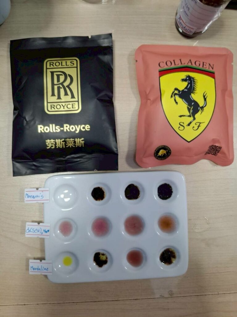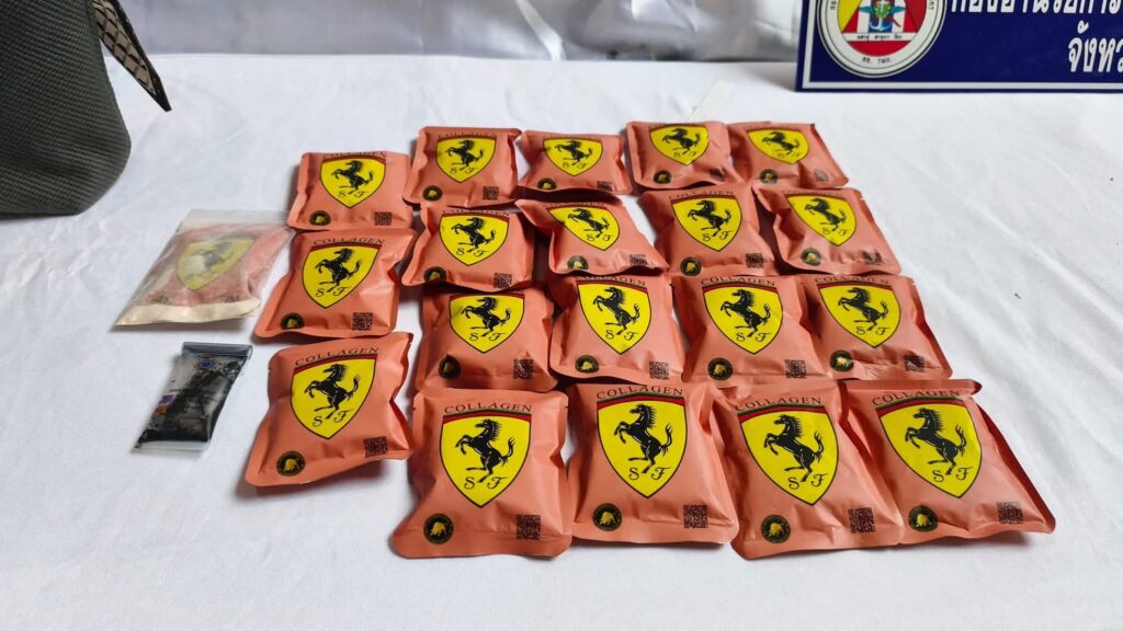 ด่านพรมแดนหนองคายจึงได้ขอทำการตรวจค้นโดยละเอียด พบวัตถุต้องสงสัย 34 หีบห่อ ภายในบรรจุเกล็ดสีขาว จากนั้นจึงนำตัวไปตรวจค้นร่างกายพบวัตถุต้องสงสัยซุกซ่อนบริเวณด้านในกางเกงด้านหน้าทั้งหมด 6 หีบห่อ รวมทั้งหมด 40 หีบห่อ เจ้าหน้าที่ฯ ร่วมกับเจ้าหน้าที่พิสูจน์หลักฐานจังหวัดหนองคายนำตัวอย่างมาตรวจสอบด้วยน้ำยา ONCB051 พบว่าน้ำยาเปลี่ยนจากใสไม่มีสีเปลี่ยนเป็นสีม่วง จึงเชื่อได้ว่าเป็นยาเสพติดให้โทษประเภท 1 (Happy Water) โดยตรวจพบยาเสพติดให้โทษประเภท 1 (Happy Water) จำนวน 40 หีบห่อ น้ำหนักรวม 3,000 กรัม มูลค่าโดยประมาณ 80,000 บาท (แปดหมื่นบาทถ้วน)