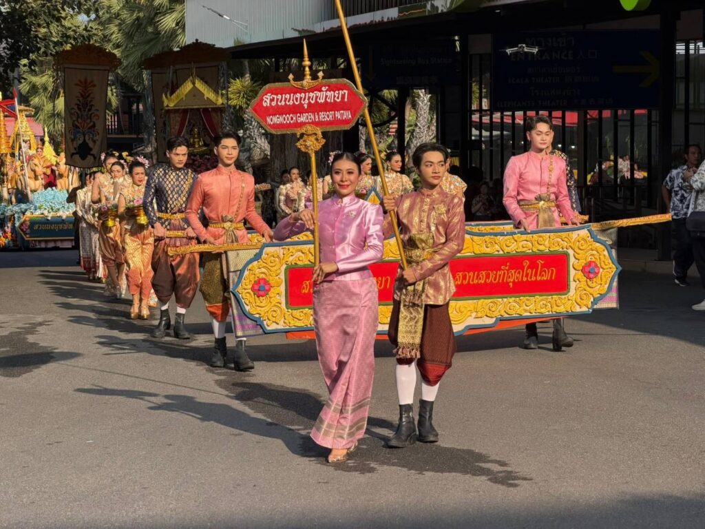 วันที่ 13 เมษายน 2569 เวลา 08.00 น. นายกัมพล ตันสัจจา ประธานสวนนงนุชพัทยา เป็นประธานเปิดงาน “เทศกาลมหาสงกรานต์ดอกไม้บานที่สวนนงนุชพัทยา” ซึ่งจัดขึ้นอย่างต่อเนื่องเป็นประจำทุกปี เพื่อร่วมสืบสานและอนุรักษ์ประเพณี และเทศกาลสงกรานต์ได้รับการยกย่องให้เป็น “มรดกภูมิปัญญาทางวัฒนธรรมของมนุษย์” (Intangible Cultural Heritage of Humanity) โดยองค์การยูเนสโก อันเป็นมรดกทางวัฒนธรรมที่ทรงคุณค่าของประเทศไทยภายในพิธีเปิดงานประกอบด้วยกิจกรรมสำคัญ ได้แก่ ขบวนแห่รถบุปผชาติอันงดงาม การแสดงชุด “รากษสเทวีศรีสงกรานต์” และพิธีเปิดงานอย่างเป็นทางการ โดยนายอำเภอสัตหีบมอบหมายให้ นายยุทธนา สร้อยเสนา ปลัดอำเภอสัตหีบ เป็นผู้แทนกล่าวเปิดงาน จากนั้นได้ร่วมพิธีตัดริบบิ้นเปิดงาน โดยมีผู้บริหารและผู้แทนหน่วยงานท้องถิ่นร่วมเป็นเกียรติ ได้แก่ นายชัยวัฒน์ ตามไท ผู้อำนวยการการท่องเที่ยวแห่งประเทศไทย สำนักงานพัทยา นางสาวระพีพรรณ รัตนเหลี่ยม นายกเทศบาลนาจอมเทียน นายธณพง โคตรมณี นายกเทศบาลตำบลเขาชีจรรย์ และนายสมบัติ แก้วปทุม นายกเทศบาลตำบลเกล็ดแก้วอีกหนึ่งไฮไลต์สำคัญของงาน คือกิจกรรมสะท้อนวัฒนธรรมและความกตัญญู โดยลูกช้างร่วมคล้องพวงมาลัยและรดน้ำดำหัวแม่ช้าง จำนวน 4 เชือก เปรียบเสมือนสัญลักษณ์แห่งความเคารพและความผูกพันในครอบครัว พร้อมพิธีสรงน้ำพระพุทธรูปจาก 9 วัด เพื่อความเป็นสิริมงคลในวันขึ้นปีใหม่ไทยกิจกรรมดังกล่าวมีไปจนถึงวันที่ 15 เมษายน 2569 ภายในงานนักท่องเที่ยวยังสามารถร่วมเล่นน้ำกับน้องช้าง ชมการแสดงศิลปวัฒนธรรมและดนตรีบนเวทีกลาง รวมถึงร่วมกิจกรรมอีกมากมาย ท่ามกลางบรรยากาศสวน ที่ติด1 ใน 10 สวนที่สวยที่สุดในโลก ที่ทุกคนควรมาชมสวยงามของสวนนงนุชพัทยา
