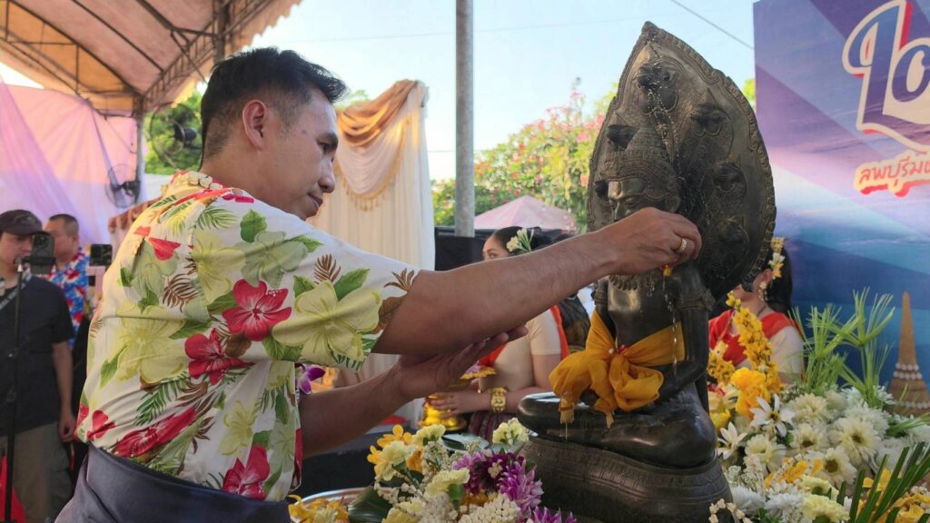 บรรยากาศสงกรานต์เมืองลิง ที่ลพบุรี ปีนี้คึกคักเป็นพิเศษ …. เมื่อบริเวณวงเวียนศรีสุริโยทัย หรือ “วงเวียนสระแก้ว” แลนด์มาร์คสำคัญใจกลางเมืองลพบุรี ถูกเนรมิตให้เป็นพื้นที่แห่งความสุขในงาน “มหาสงกรานต์ ลพบุรี ประจำปี 2569” ซึ่งถือเป็นการจัดงานยิ่งใหญ่เต็มรูปแบบครั้งแรก โดยได้รับเกียรติจาก นางสาวมัลลิกา จิระพันธุ์วาณิช รองประธานสภาผู้แทนราษฎรคนที่ 1 และ ผู้ว่าราชการจังหวัดลพบุรี ร่วมเป็นประธานเปิดงาน