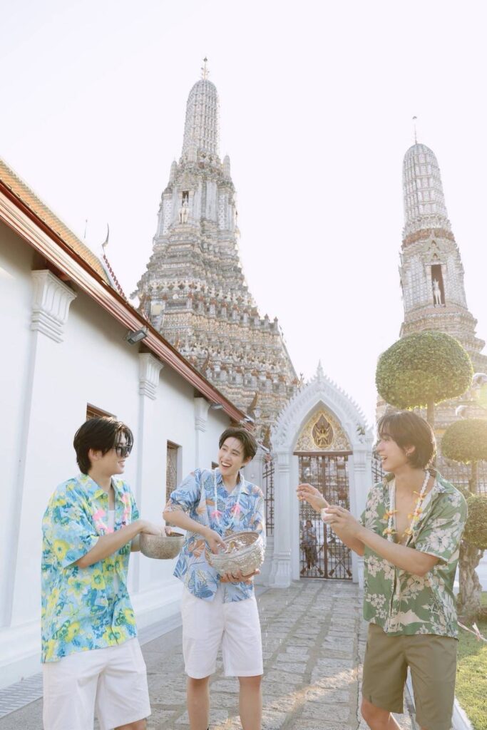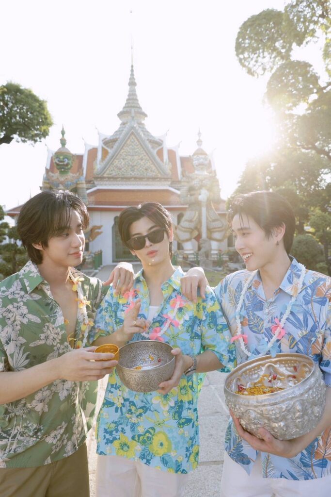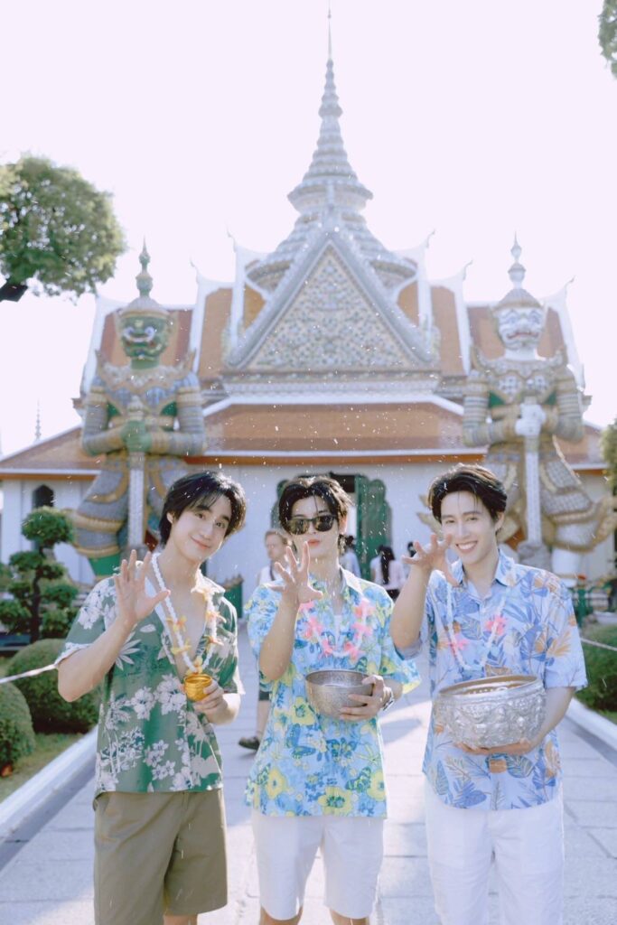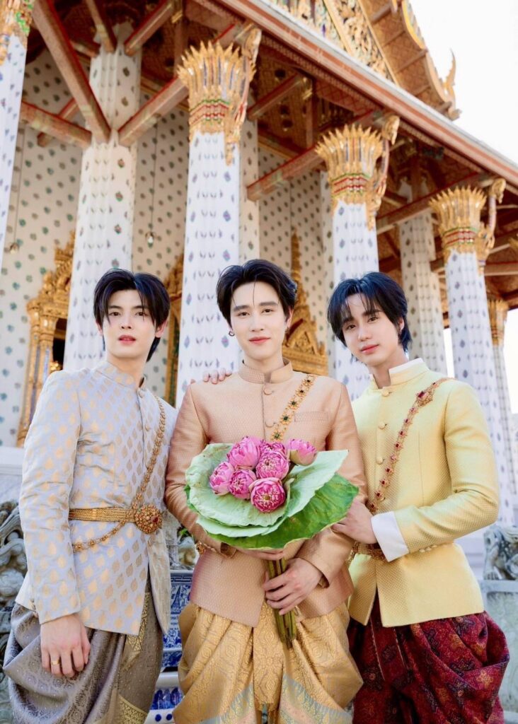 แอบไปเห็นภาพหล่อๆ ของ 3 หนุ่ม “เมฆ-ไทเกอร์-นัตเตอร์” ใน IG ค่ายหนุนนำสตูดิโอ้ (#nunnamstudio) โดยผู้จัดฯ ป้ายแดง ดี้-ปัทมา ปานทอง จัดเสิร์ฟความหล่อของลูกๆ ตอกย้ำและสืบสานความสวยงามของชุดไทยอย่างต่อเนื่อง เพื่อต้อนรับเทศกาลสงกรานต์ประเพณีปีใหม่ไทย โดย แม่ดี้ จับ 3 ลูกชาย เมฆ-ธนาวิน หาญพานิช, นัตเตอร์-ธนภูมิ ชุมพล และ ไทเกอร์-ภัทรพล ภิญโญธีรโชติ นักแสดงนำจากซีรีส์วาย “แฟ้มรักต้องห้าม” แปลงโฉมใส่ชุดไทยอวดความหล่อ ออร่าจัดเต็ม พร้อมเทรนด์ “ดอกบัว” ที่ไม่ยอมตกกระแส โชว์เสน่ห์หนุ่มไทยให้ชาวโลกได้ประจักษ์ที่ วัดอรุณฯ